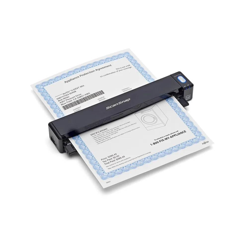 Manage receipts, invoices and other paperwork with this RICOH ScanSnap iX100 sheetfed scanner. A one-button PDF function lets you create searchable digital files, while the wireless connectivity makes it easy to scan documents from your mobile device. Color scan speeds of up to 5.2 seconds mean less waiting for your files to be created. With its compact size, this RICOH ScanSnap iX100 sheetfed scanner makes a perfect business travel companion.