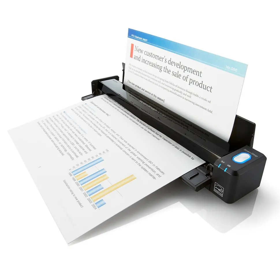 - Portable scanner with wireless and USB connections for easy and fast on-the-go scanning