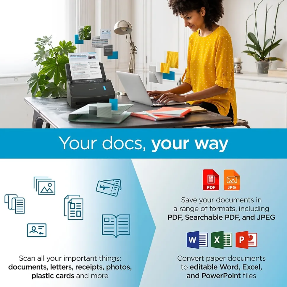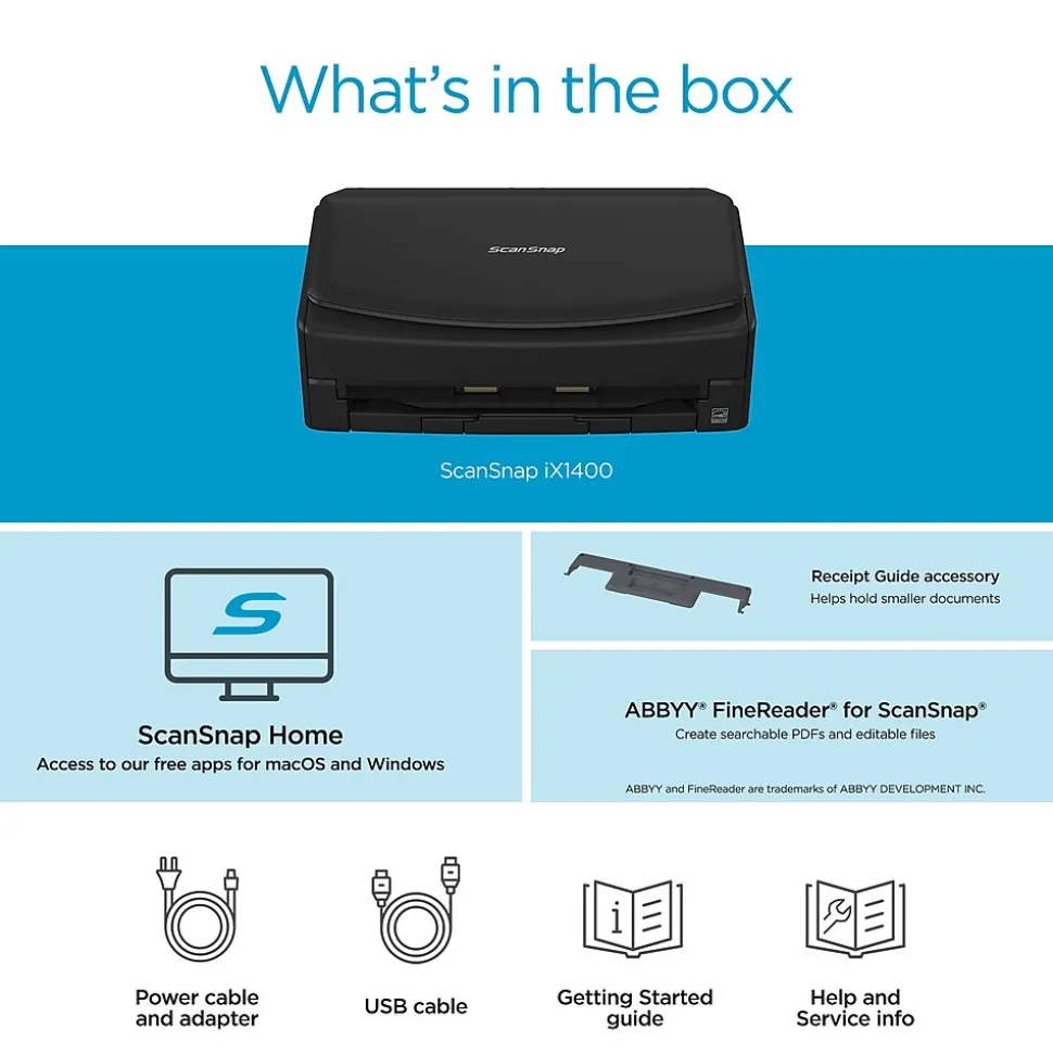 The ScanSnap iX1400 is a testament to simplicity proving technology doesn’t have to be complicated. With a one-button touch to scan, digitize and organize documents, the iX1400 is perfect for every day scanning needs.