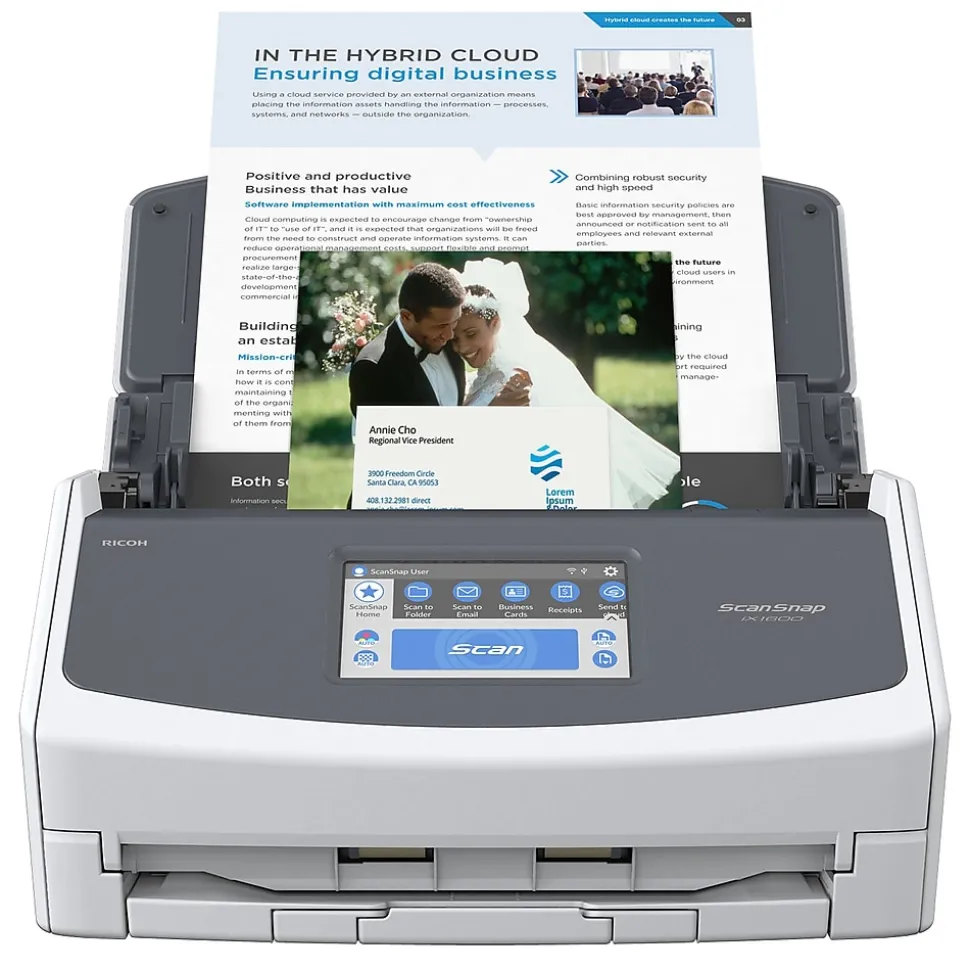 The next generation iX1600 is the most flexible scanner in the category, allowing users to connect via Wi-Fi or USB. With 33% faster duplex scanning, you can get more done in less time and with ScanSnap Home 2.0 software, documents will be digitized, organized and saved with minimal effort.