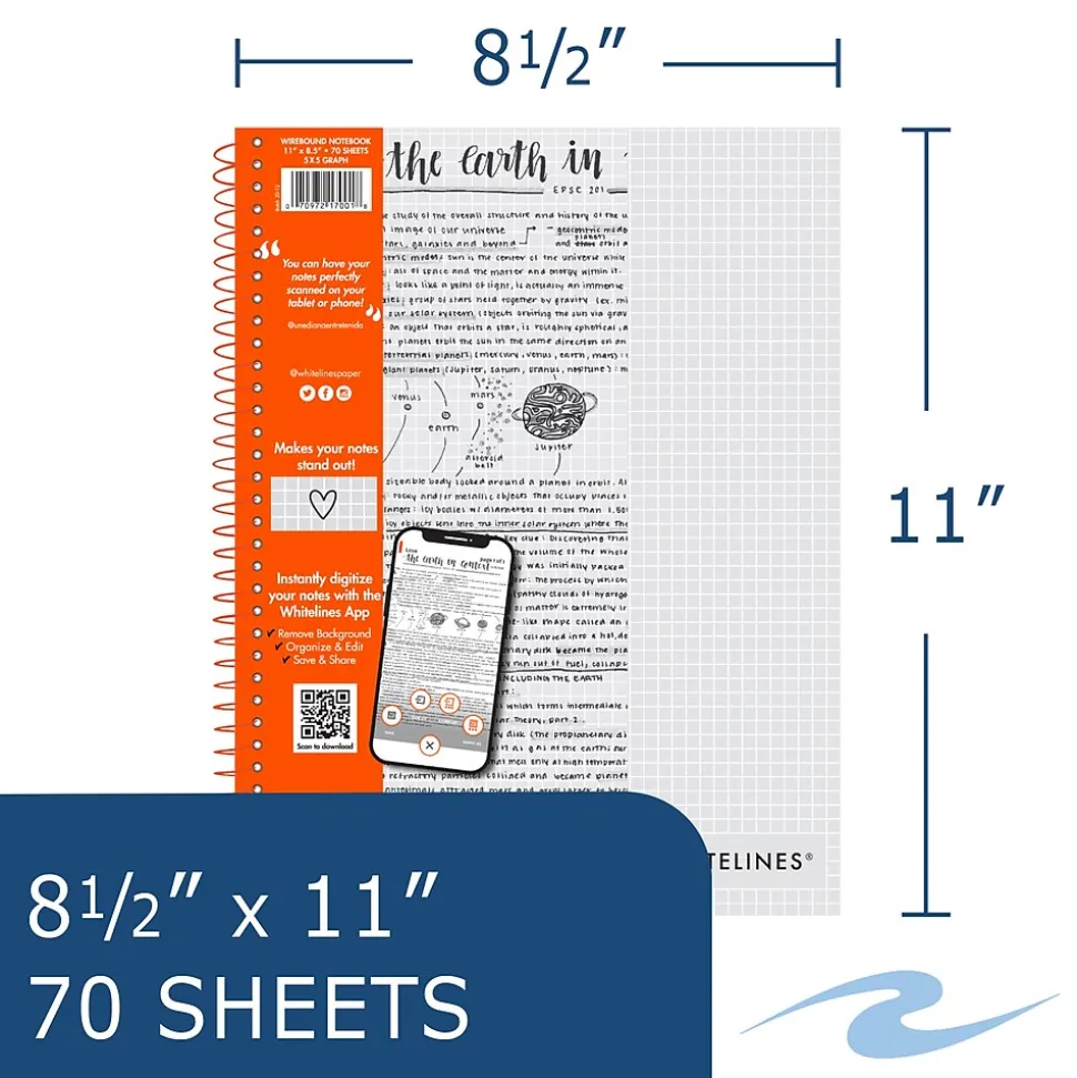 Whitelines Wirebound Notebook – Paper that works with your phone! Instantly digitize your notes with the Whitelines App. You can have your notes perfectly scanned on your tablet or phone!