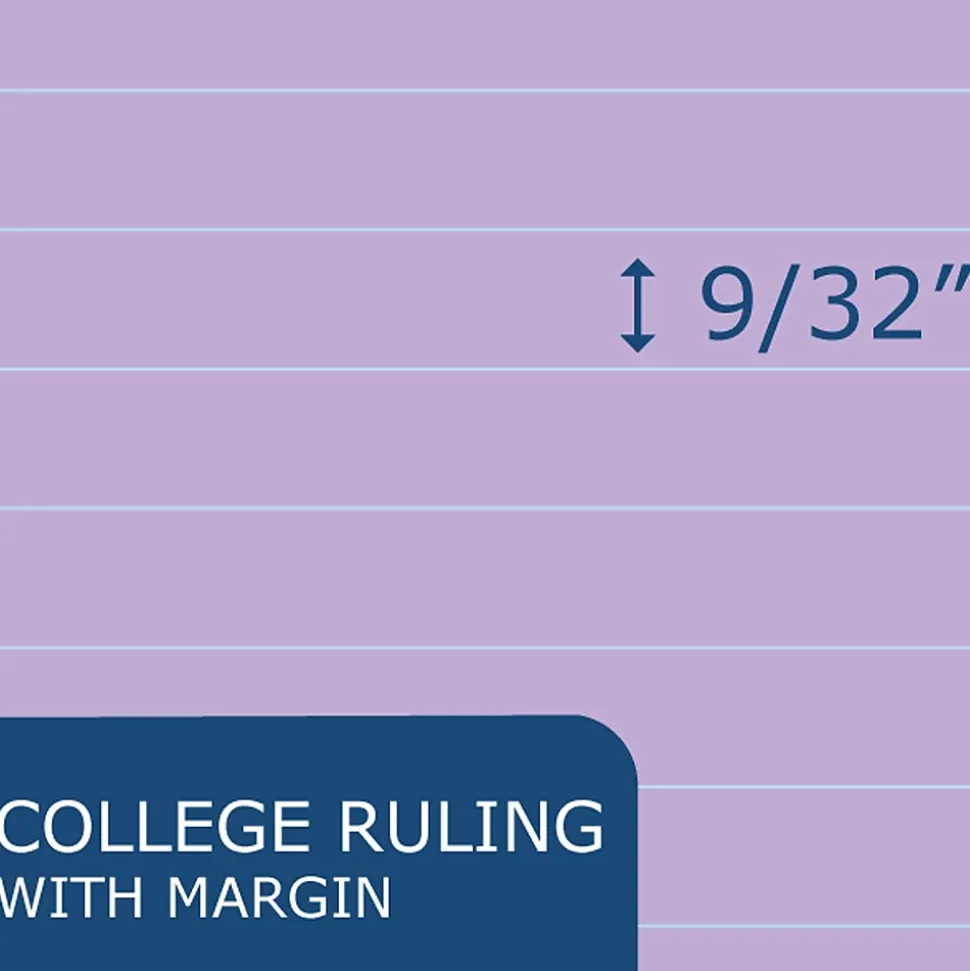 - College ruled blue lines with red margin, perforated for a clean and easy tear out.