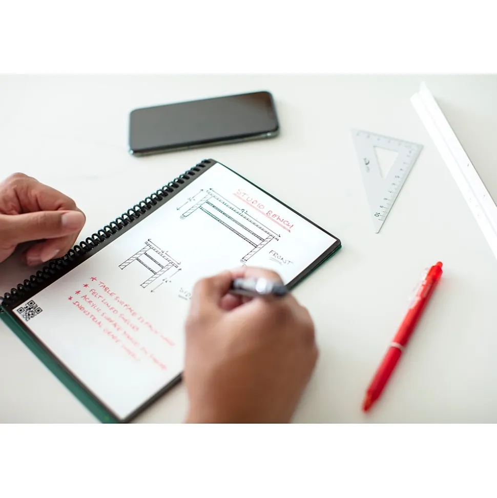- No more wasting paper – reusable notebook can be used endlessly by scanning your notes and wiping the pages clean with a damp cloth