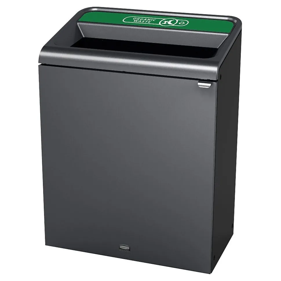 - ATTRACTIVE RECYCLING: Constructed of corrosion-resistant heavy gauge steel with a damage-resistant powder coat finish and contoured edges for a modern appearance, the garbage can fits any commercial environment