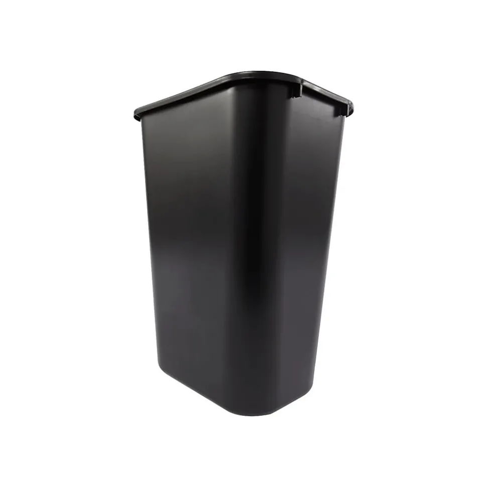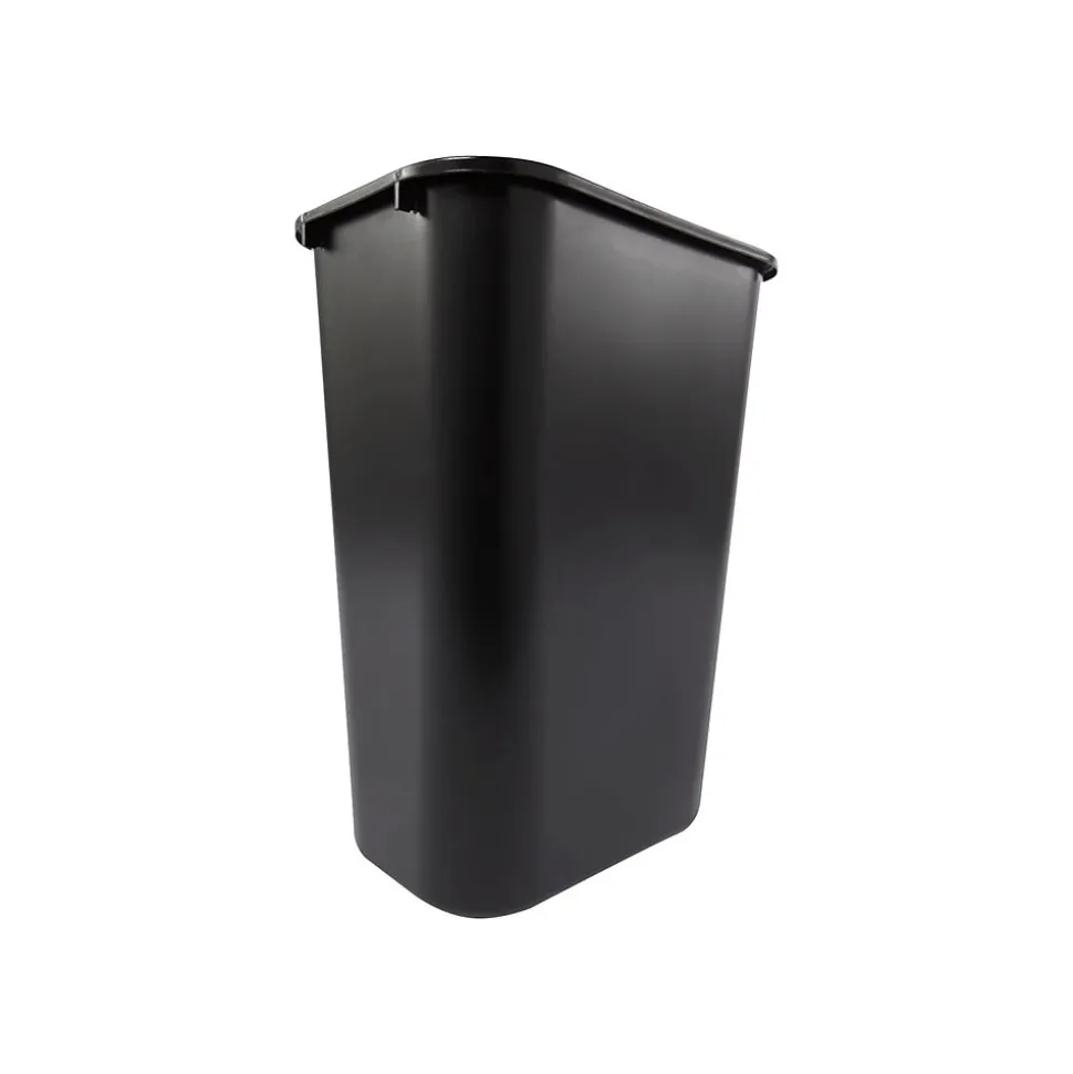 Stow this 10.25-gallon basket under desks, near counters, in bathrooms and at beverage stations to provide a convenient and discreet option for garbage disposal. This Rubbermaid deskside wastebasket is made from sturdy plastic that resists chips and dents and is easy to clean.