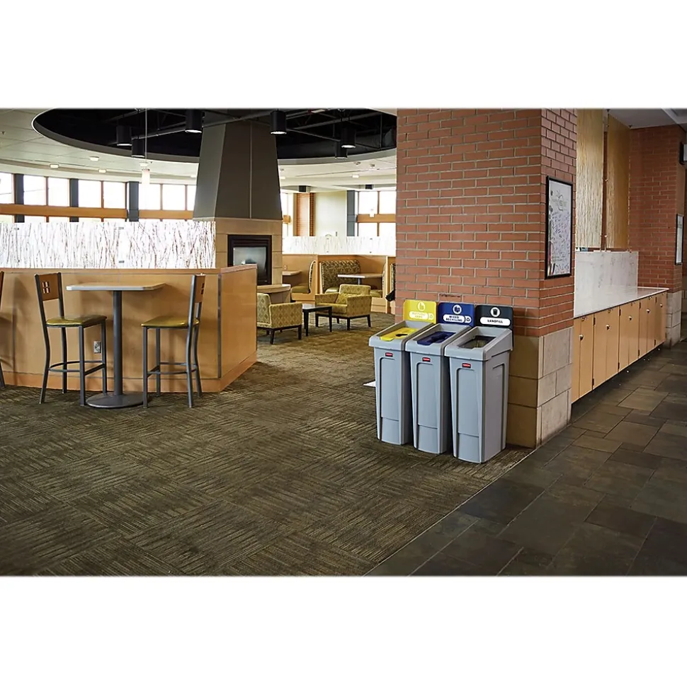 The Rubbermaid Commercial Products 23G Slim Jim Recycling Station offers an adaptable recycling solution to fit any commercial facility’s recycling needs and it seamlessly connects with the 33G Slim Jim Recycling Station. The station features color-coded lids and billboards, stream-specific openings, and labeling with intuitive icons and verbiage to help patrons and staff sort recyclables with ease.