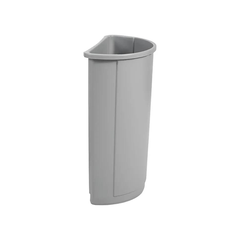 Create a centralized location for waste to be deposited with this half-round waste container. A compact half-round design makes the container great for use in large or small spaces, while the durable crack-resistant construction allows for indoor or outdoor use. The seamless design of this Rubbermaid Untouchable container makes it easy to clean when needed.