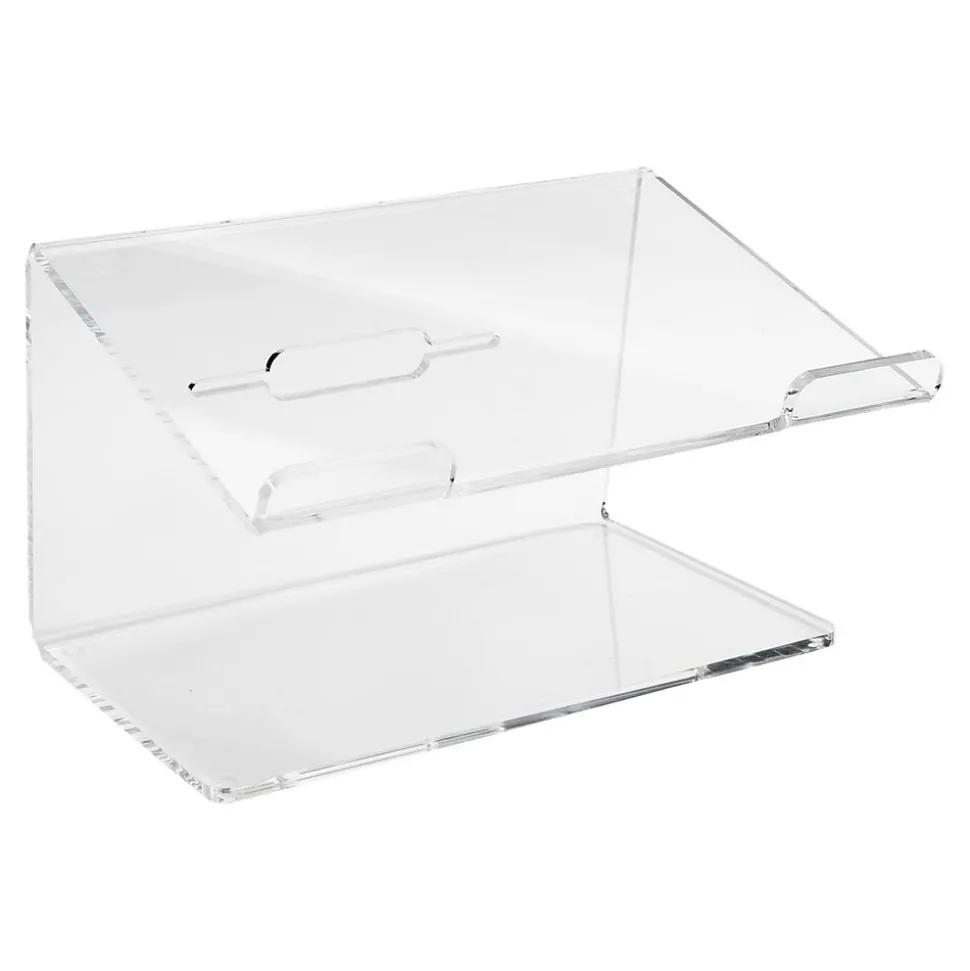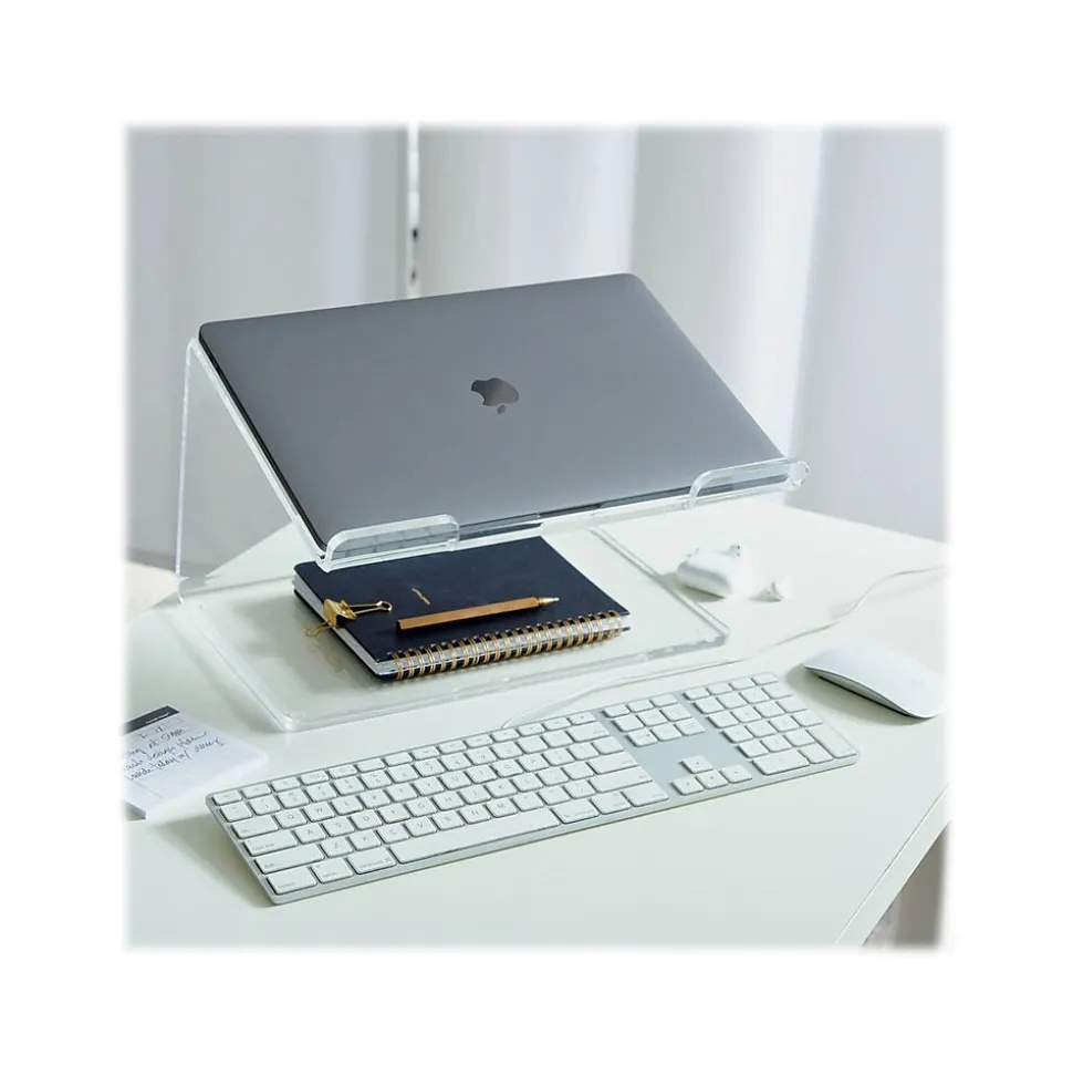Create the perfect home base for your laptop with the Russell+Hazel acrylic laptop stand. Features a durable construction with polished edges to last for years to come. An integrated cord manager slot allows for a neat and tidy solution for laptop accessories on your desktop. The angled stand accommodates laptops up to 16″ with two front lips to keep your device in place. Seamlessly coordinates with the brand’s entire line of acrylic organization tools for a complete desktop system.