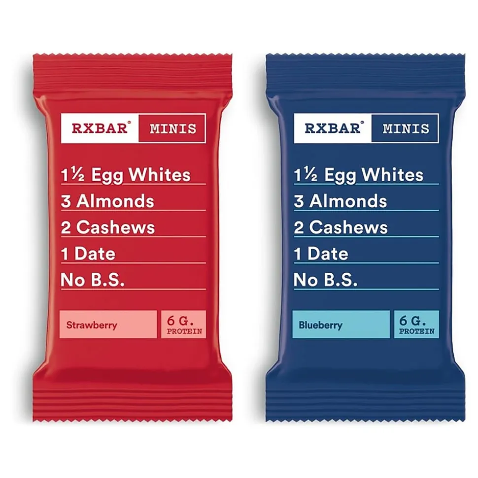 Perfectly sized to fit in your pocket, this RX Bar Minis variety pack delivers all the real fruit flavor you’re looking for in a mini, portable size. Take these protein bars with you on your next errand run, on the way to the gym, or when you’re just snacking at your desk. With ingredients you can recognize (egg whites, almonds, cashews, dates, and real strawberries or blueberries), take a bite of sweet goodness and enjoy 6g of protein when you need it most.