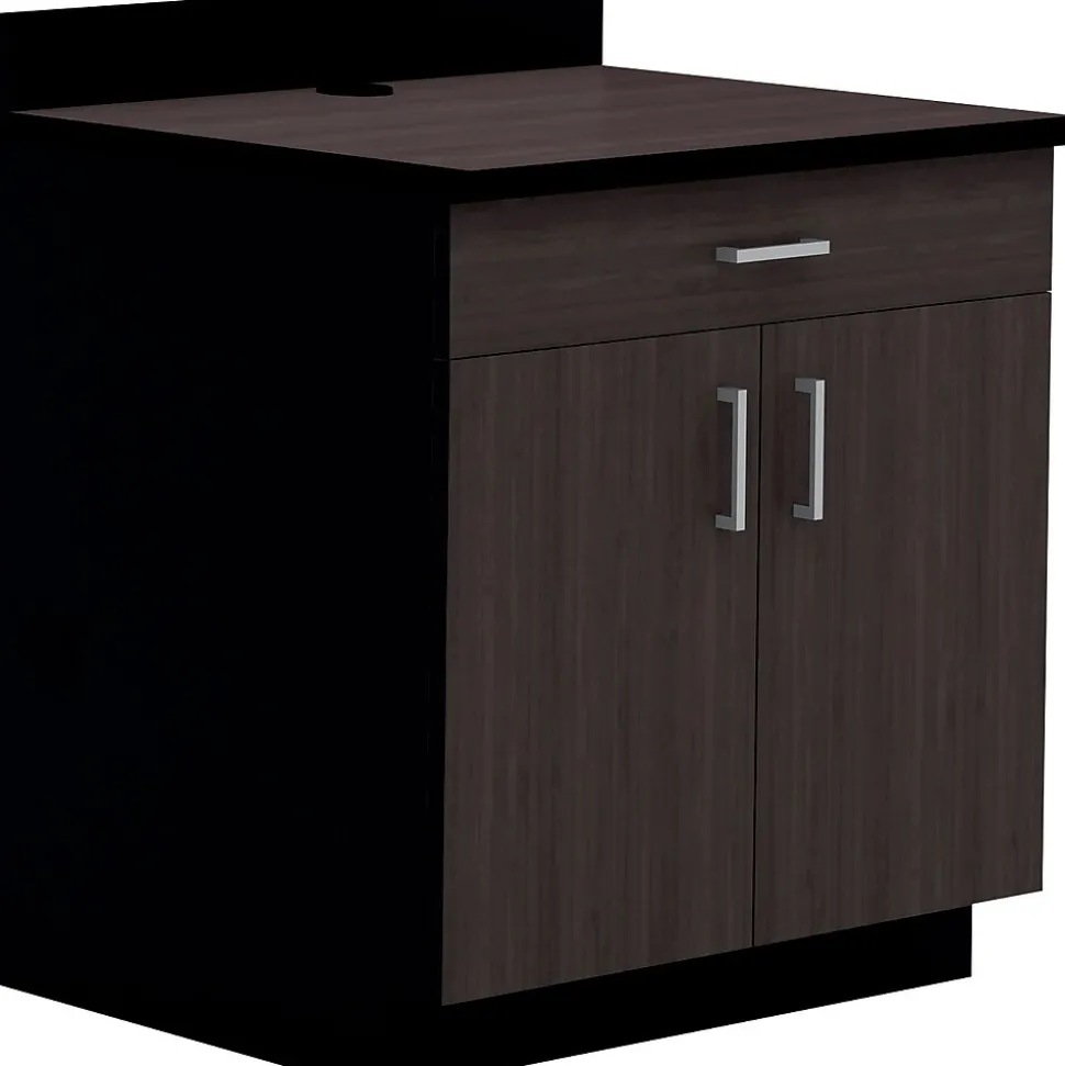 - Cabinets also feature durable thermal fused melamine laminate design with adjustable shelving, color-matched interior and exterior and open back design for access to power outlets