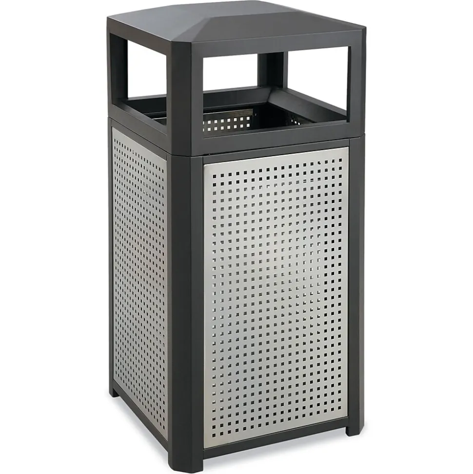 Evos Series Steel Waste Container is available in a durable perforated steel frame. Its sleek design makes it the right choice for your space and offers convenience of use with four side-openings.
