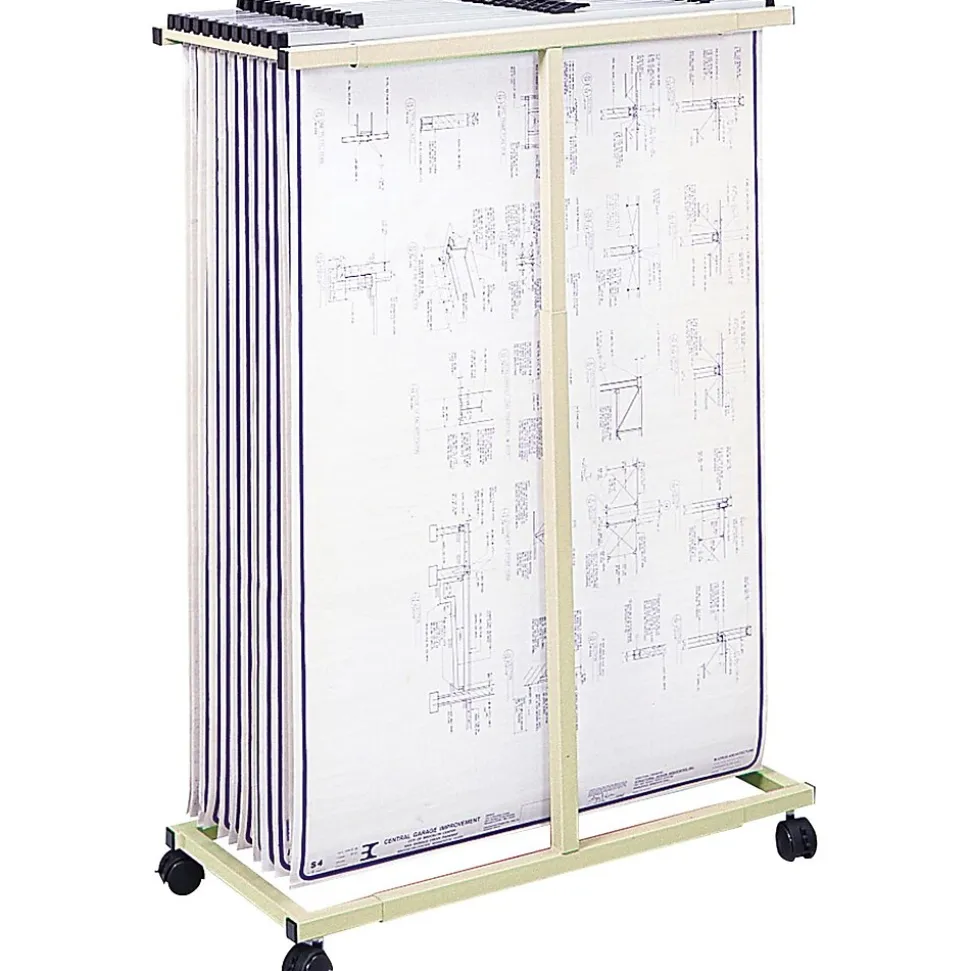 Keep maps, charts, blueprints and other large documents organized and accessible with this mobile file stand from Safco. This stand holds up to 12 clamps ranging in size from 24 to 36 inches, offering a convenient way to hang large documents for storage while minimizing the risk of damage and saving on space. Four casters provide easy mobility, and the tropic sand color blends easily with your office decor.