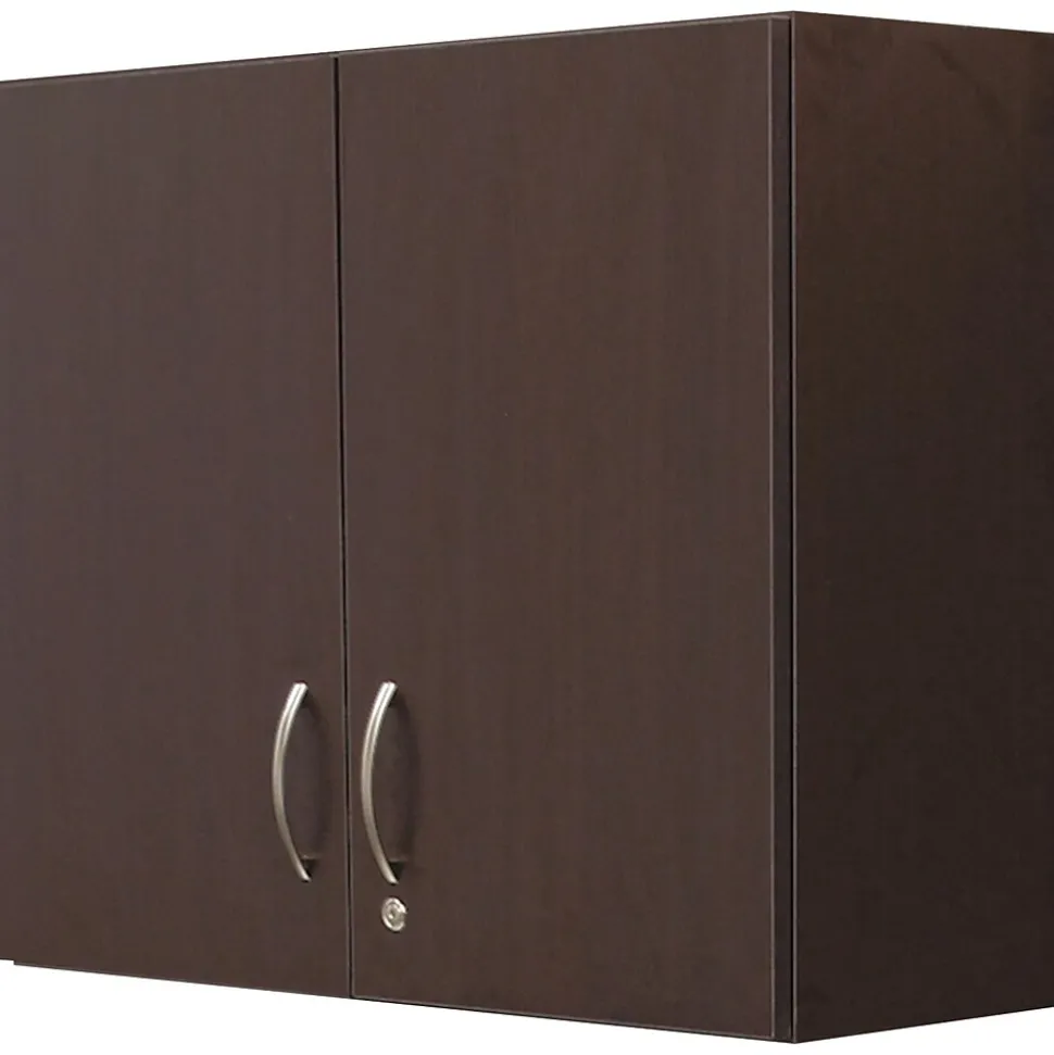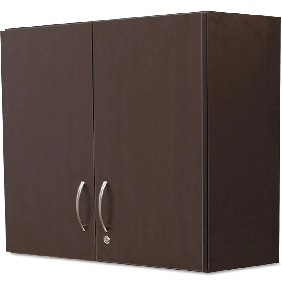 Alera Plus™ 30″ x 36″ Espresso hospitality wall cabinet with 2 doors offers easy storage and has slender door/drawer pulls for convenience. Cabinet has damage resistant thermofused melamine laminate with PVC edges for safety.