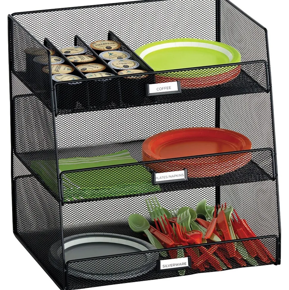 Create breakroom brilliance with the Onyx Hospitality Organizers. The breakroom organizer, 3293BL, comes with the works. Three large compartments, three removable and adjustable dividers and metal lab