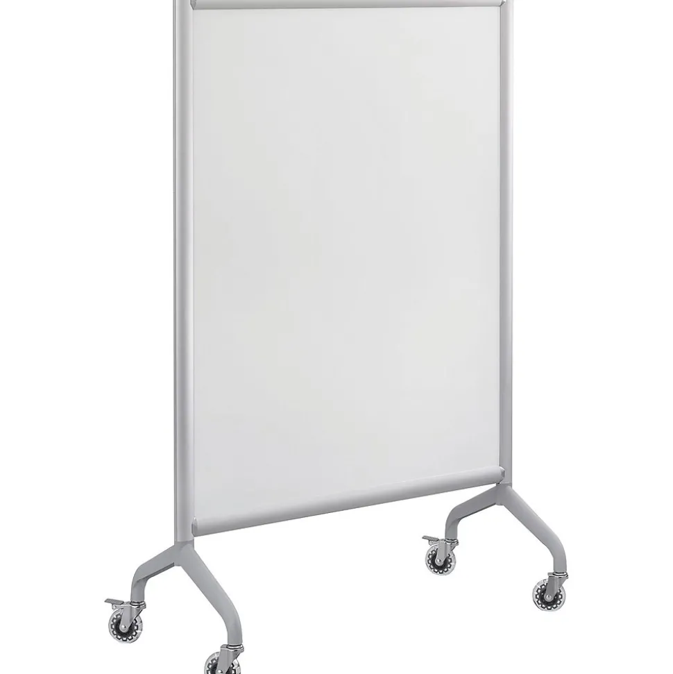 Every Rumba™ Collaboration Screen, the full panel polycarbonate or the full panel whiteboard, features four high performance casters, 2 locking, on an aluminum base for quick and easy placement.