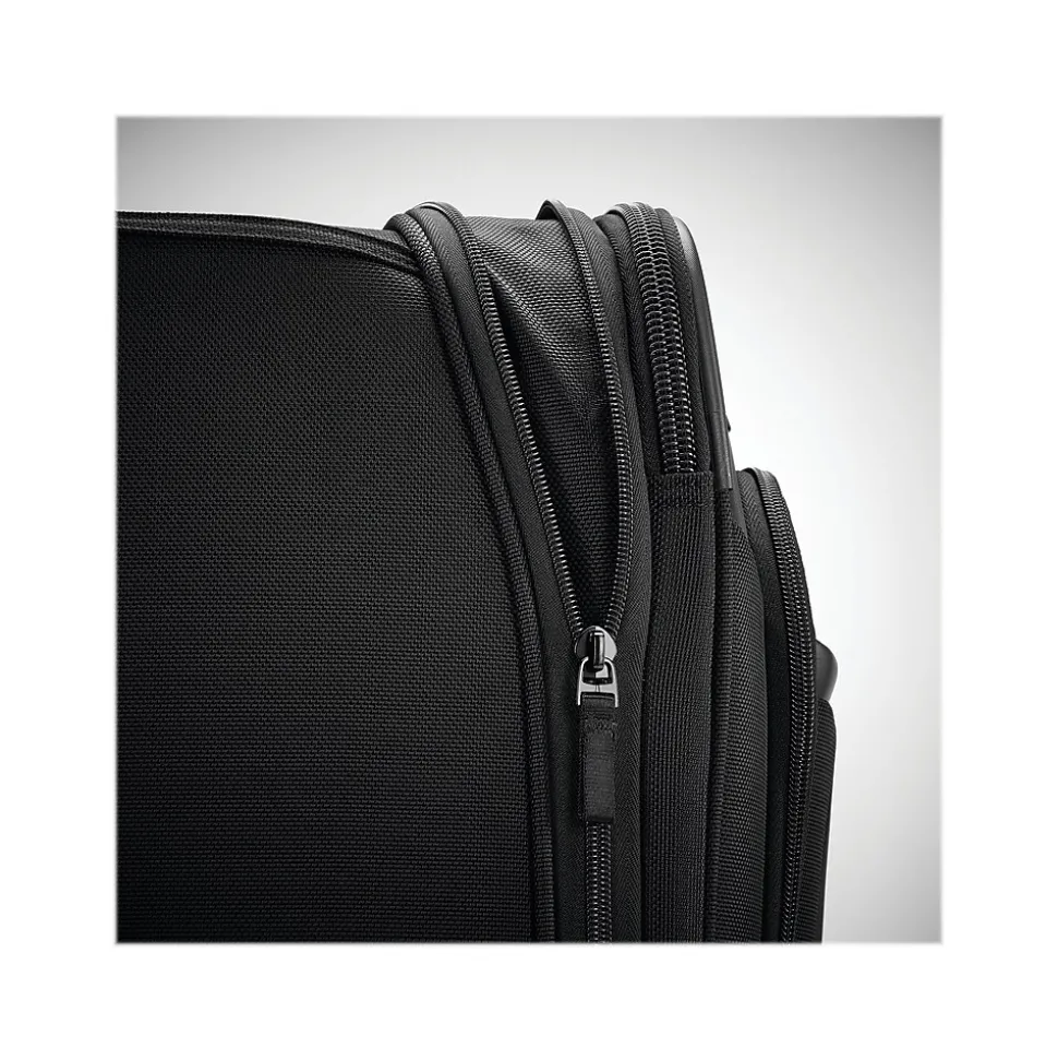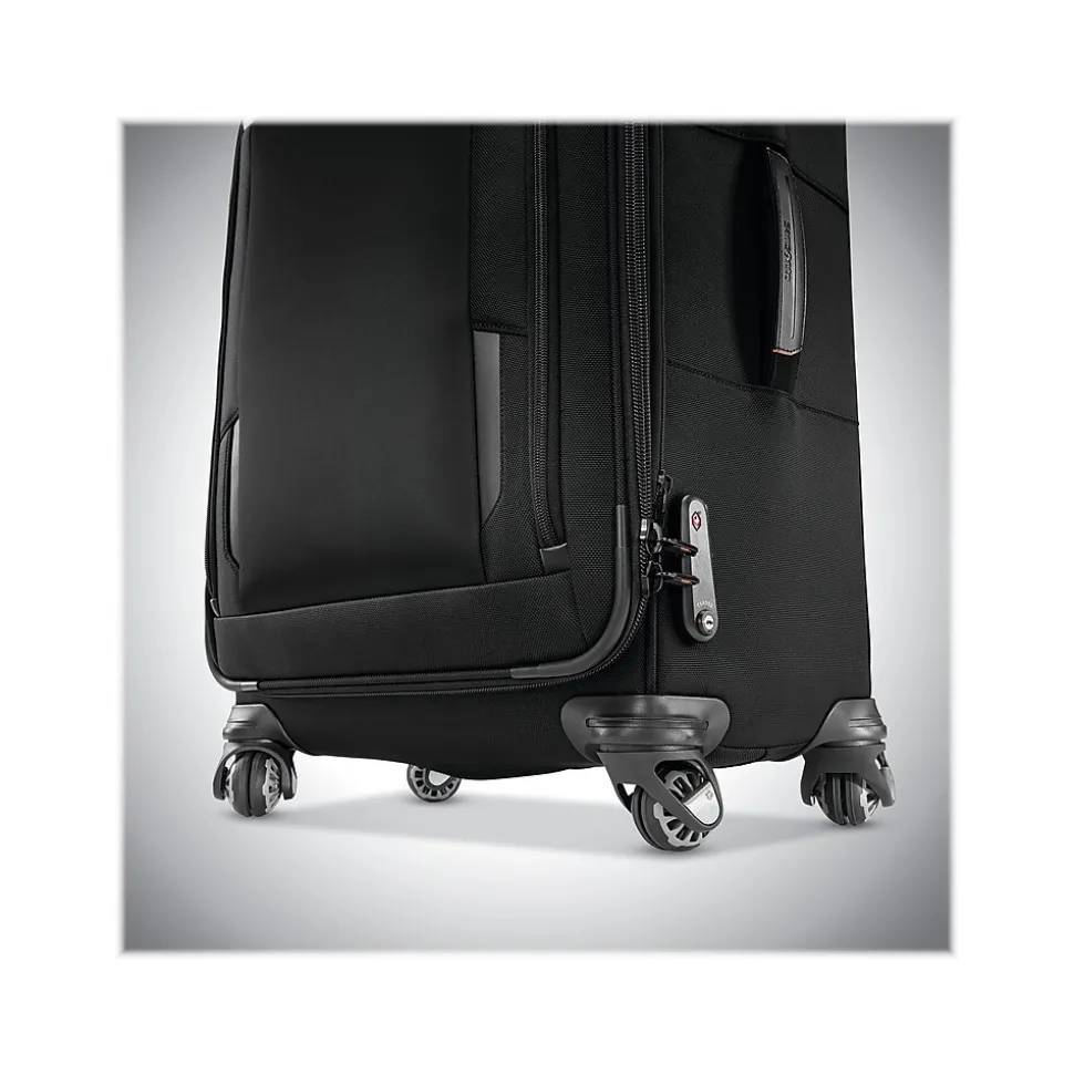 Travel with the Samsonite Pro bag that goes the distance with durable construction and upgraded conveniences. When you live out of your suitcase, details matter. Drop your phone in the dedicated pocket, and it charges wirelessly. Guard your identity with the RFID pocket. Hang clothes neatly in the trifold suiter, and pack liquids in a Wetpak pocket. All in the durable yet sophisticated bag.