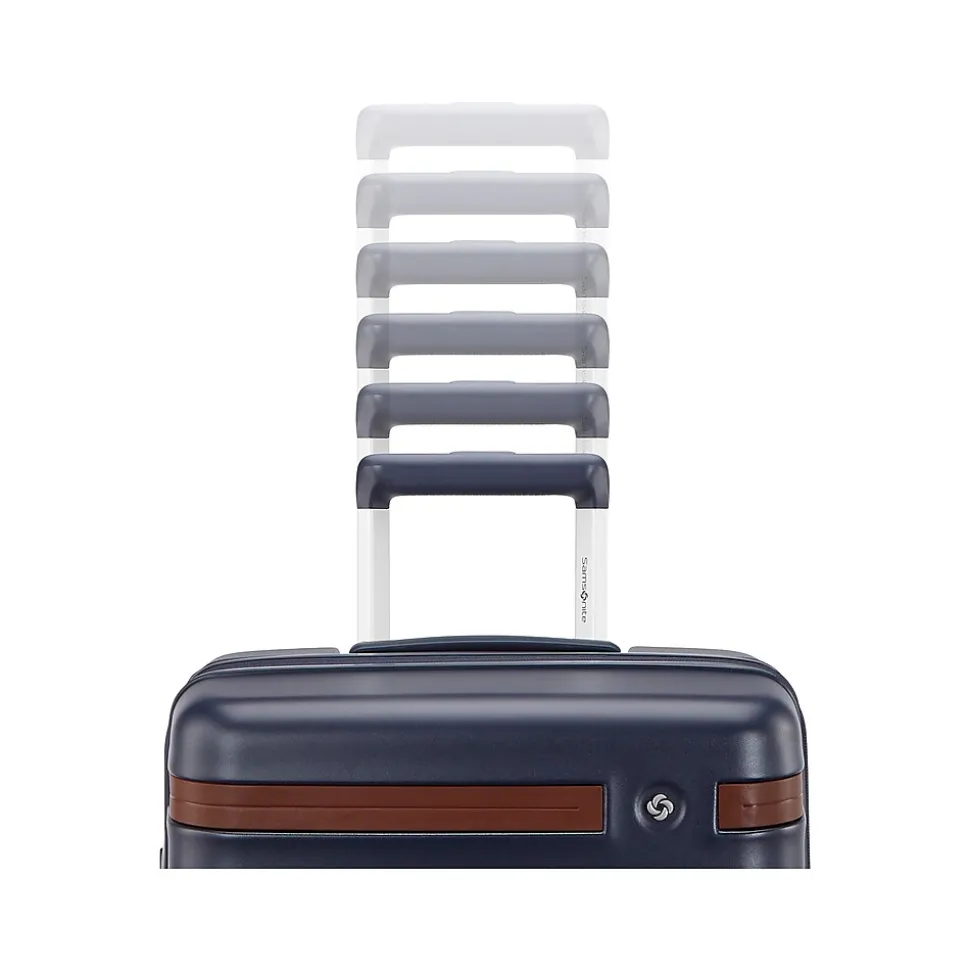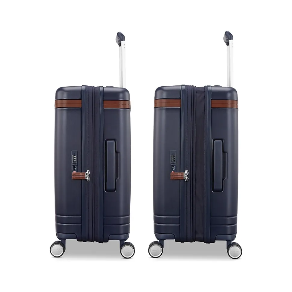 Elevate your carry-on aesthetic with the Samsonite Virtuosa expandable carry-on. Featuring an expansion, integrated TSA lock, RightHeight handle, dual spinner wheels, and sleek leather-like accents, this case is a stylish addition to your travel essentials.