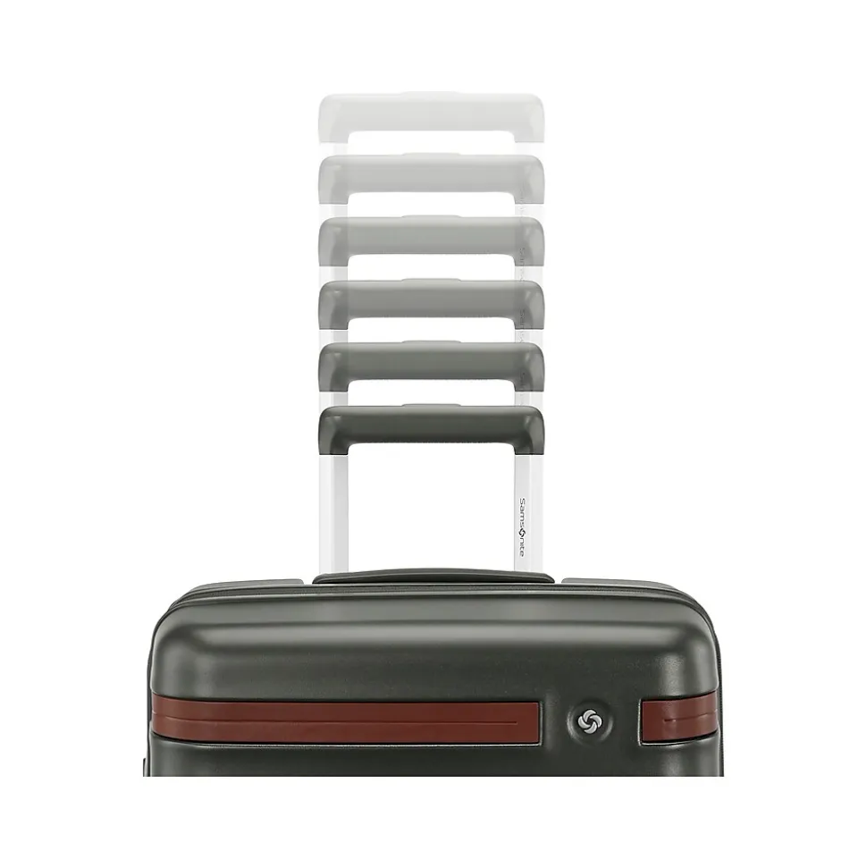 Elevate your carry-on aesthetic with the Samsonite Virtuosa expandable carry-on. Featuring an expansion, integrated TSA lock, RightHeight handle, dual spinner wheels, and sleek leather-like accents, this case is a stylish addition to your travel essentials.