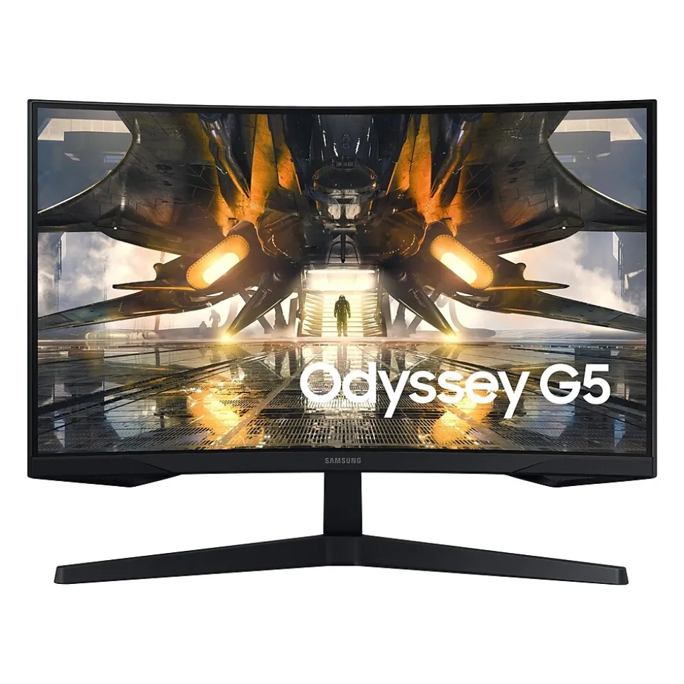 - Package includes: Samsung Odyssey G5 S32AG552EN, DisplayPort cable, and HDMI cable