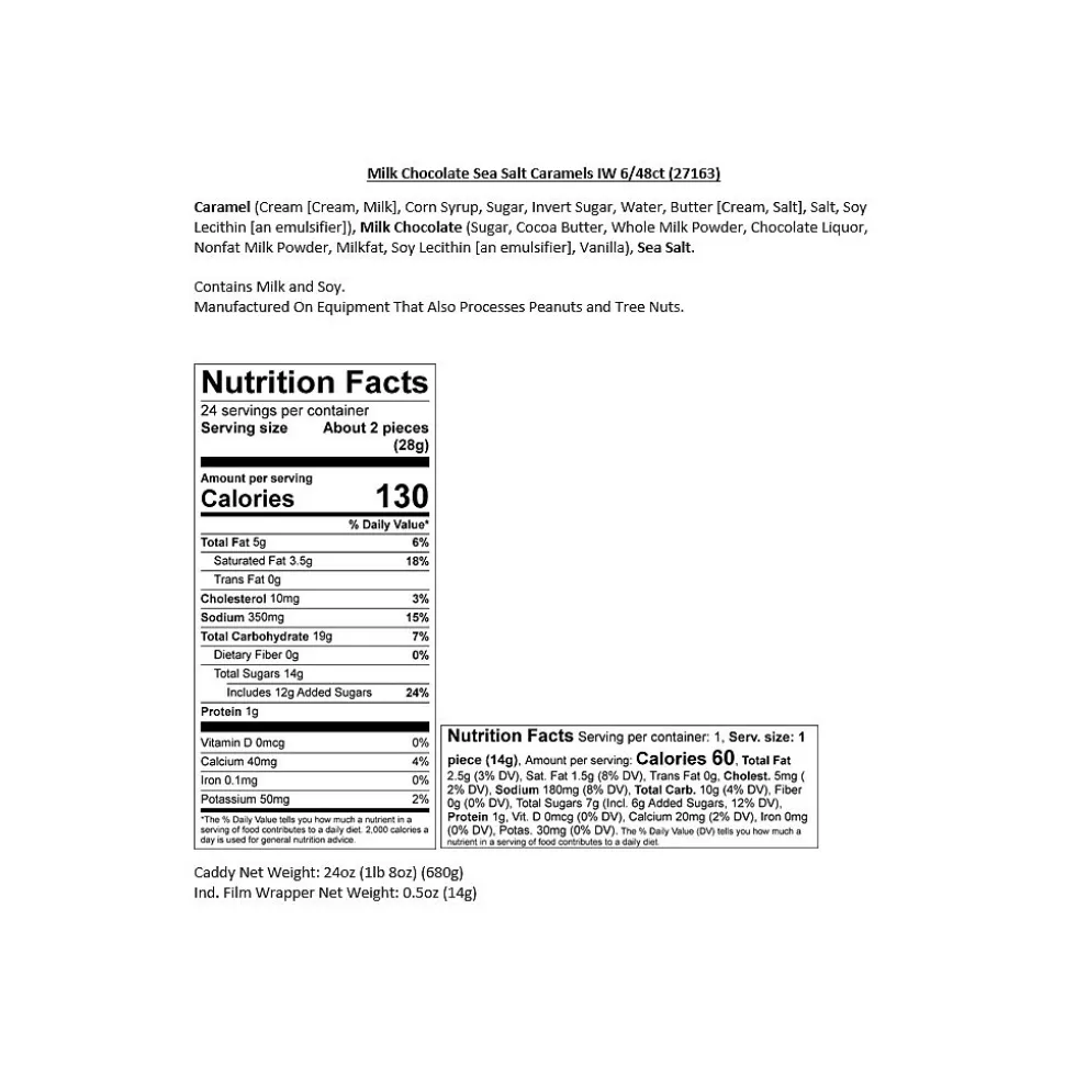 - Famous kettle-cooked caramel draped in premium milk chocolate and sprinkled with coarse sea salt