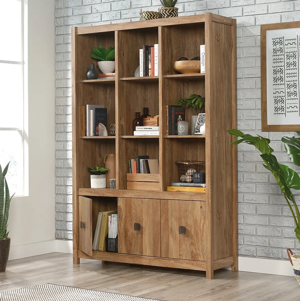 Kick clutter and chaos to the curb and create the organized home of your dreams with this storage wall from the Cannery Bridge collection. This beautiful bookcase features nine cubbyhole storage areas that provide you with the perfect amount of space to stow away items like stacks of books, organizing bins, photo albums and so much more! These spacious cubbies also make a great spot to display your favorite home decor items like decorative plants, your collection of knick-knacks and photos of your family and friends. There is room for all your things! This wall storage includes six adjustable shelves that can move to different heights to create flexible storage for items of all shapes and sizes. Behind each of the lower doors is a hidden storage area for additional storage of other miscellaneous household items. Its eye-catching style and versatile design make this bookcase with storage a great fit for any room in your home. Finished in Sindoori Mango, this wall storage gives you the style you want with the functionality you need.
