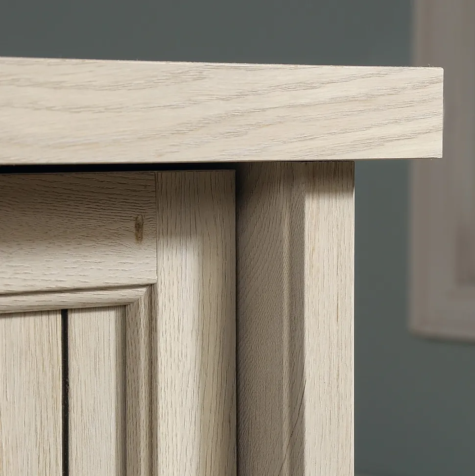 Give your home office or workspace a fresh new look with the cottage-inspired style of this executive desk from the Costa collection. It features a durable, 1 thick table top with a spacious surface so you can have room for all your office supplieslaptop, folders, a pencil container and even a little home decor. It features a large pencil drawer along with four storage drawers that open and close on smooth metal runners. Talk about storage space! The two lower drawers include full extension slides and hold letter or European size hanging files for optimal organization of all your important papers and documents. It also features a cord management system with two desk top grommet holes so you can keep all your wires neat and out of sight. Finished in Chalked Chestnut with framed, slat-front detailing, this executive desk adds a touch of coastal paradise to your office space.