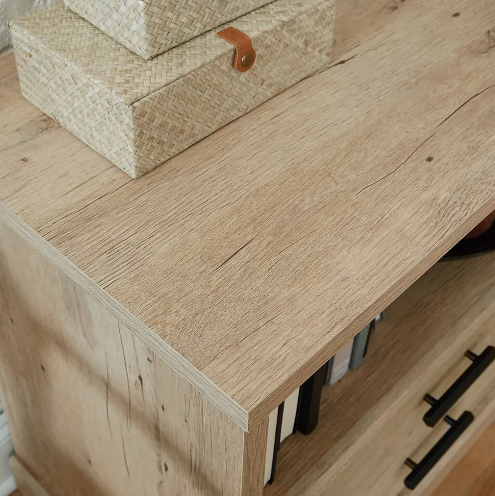A multipurpose file credenza, like this one from the Mason Peak collection, allows the highest level of configurability and storage options to give you the office space you’ve always dreamed of. The top of this office storage credenza features a strong and lightweight 1″ panel constructionmeaning, it is perfect for your heavier office essentials while remaining easy to assemble and rearrange. A melamine surface makes the top of this office storage cabinet resistant to heat, stains, and scratches. This storage credenza features an adjustable shelf behind the door located on the right side. The adjustable shelf allows you to modify the file cabinet to accommodate items of various heights. Don’t forget the hanging files! A piece of commercial office furniture would not be complete without a file drawer with full extension slides that holds letter or legal-size hanging files. This keeps your documents organized and easy to locate. Finished in a Prime Oak and featuring attractive hardware, this resimercial file credenza adds an interesting look and optimal storage solutions to your office.