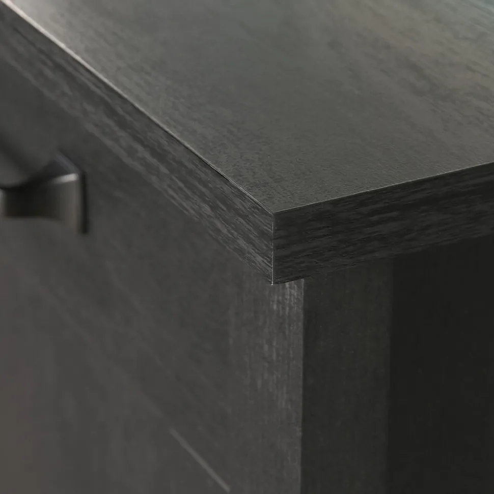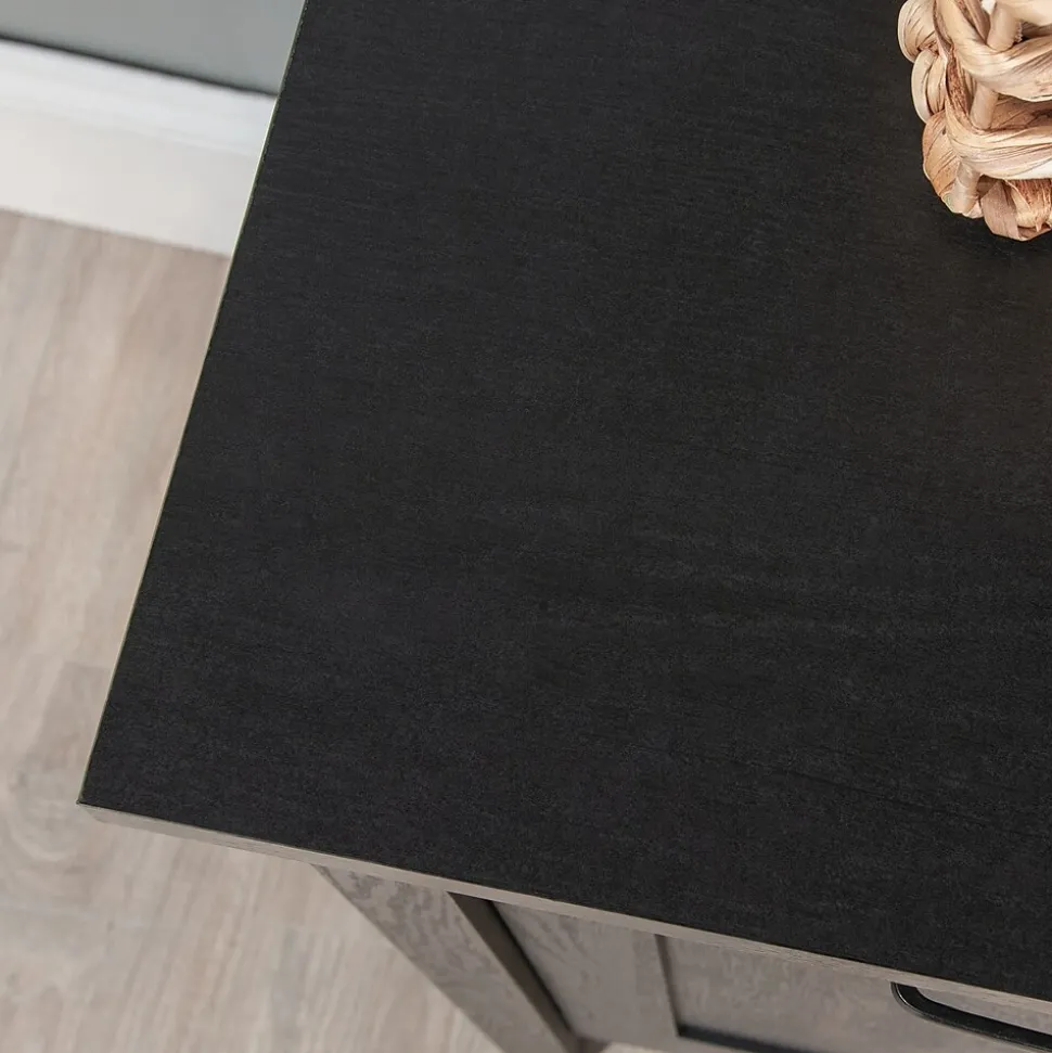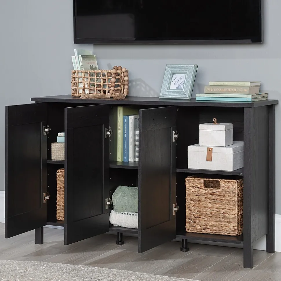 Finished in luxurious Raven Oak, the 3-door storage cabinet from the Sauder Select collection embodies both form and function for a classic and elegant storage solution. This sophisticated storage cabinet with doors seamlessly combines a traditional aesthetic with ample storage solutions. Behind its three beautiful, framed doors are hidden compartments and adjustable shelves, offering versatile configurations for items of all sizes, including space for 12 x 12 storage bins (sold separately). From dinnerware and napkins to board games and puzzles, this 3-door console cabinet accommodates a diverse range of household necessities. The framed door fronts of this sideboard storage cabinet are adorned with sturdy, visually appealing metal hardware. Crafted in a dark, opulent finish, this console storage cabinet provides a spacious top surface for showcasing cherished family photos, a stylish lamp, or a selection of festive holiday decor. A truly versatile piece, this cabinet will deliver optimum organization while stylishly standing by to display and celebrate your personal style.