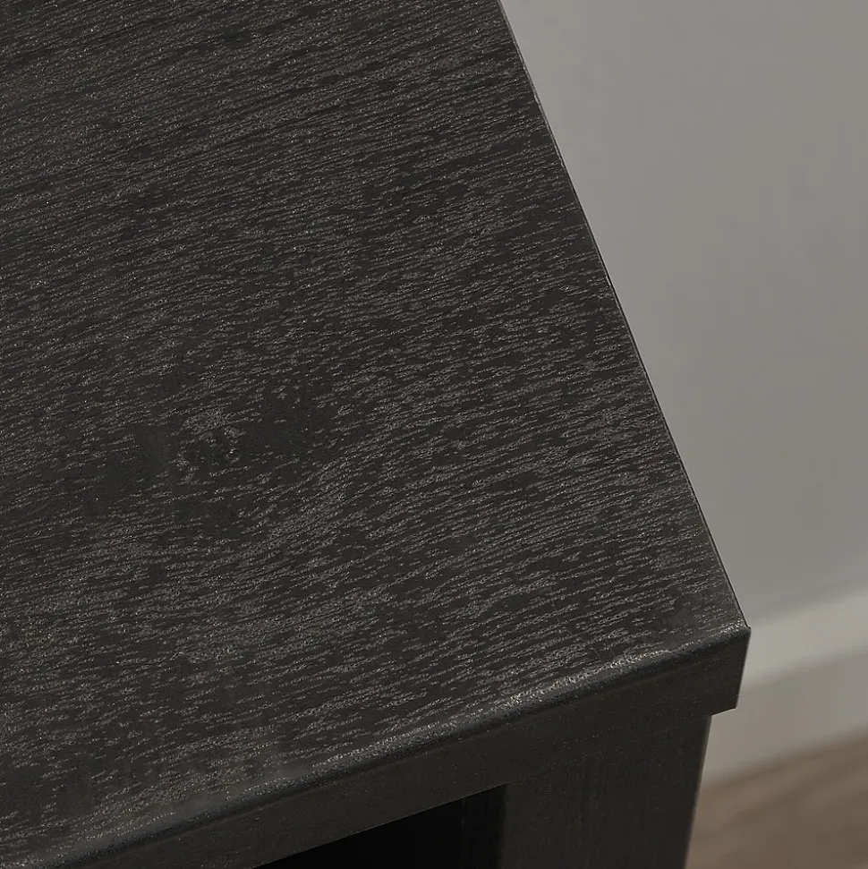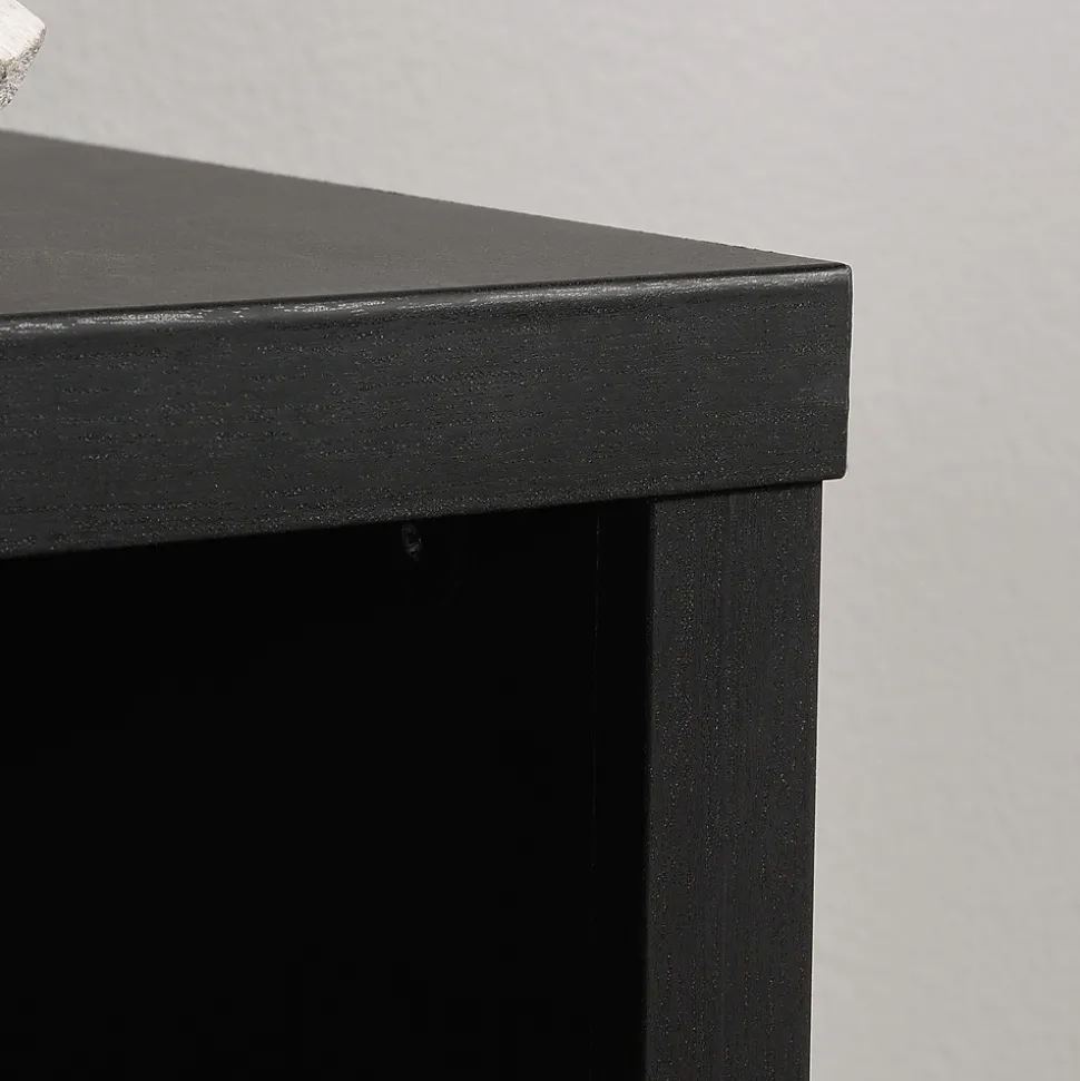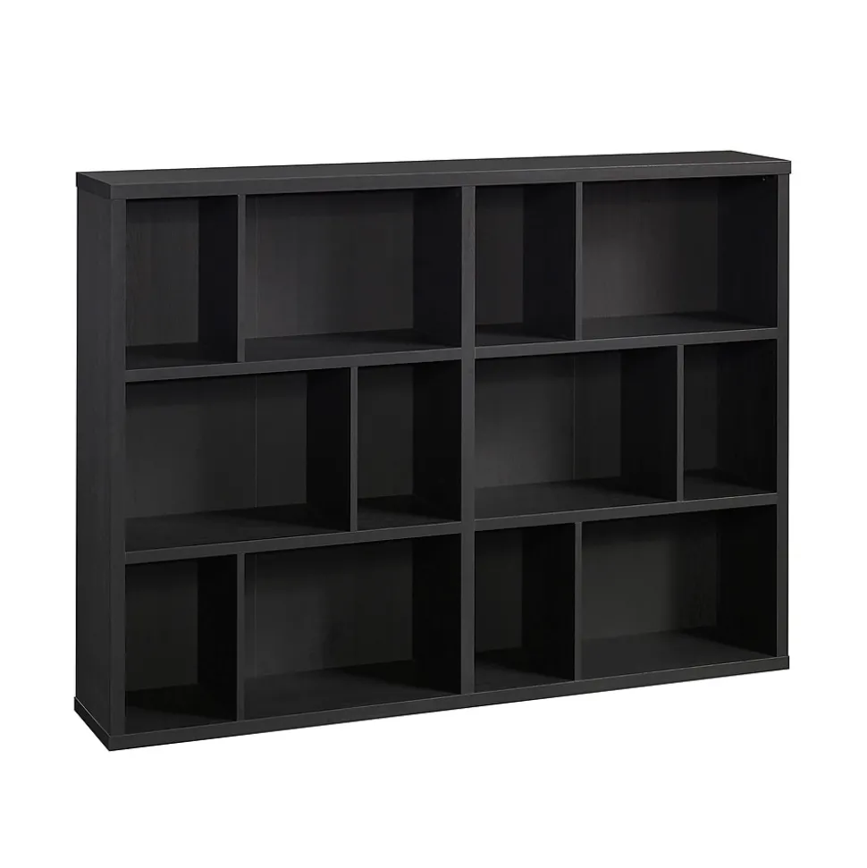 Out with the old design of bookcases. Wave hello to the modern design of this cubby bookcase from the Sauder Select collection. This display bookcase cubby is both strong and lightweight. With thick 1” and 1 ¼” panel construction, this storage unit is easy to move around your home but sturdy and bold enough to hold whatever you choose to display on it. This modular cube storage unit catches the eye: different sized and shaped cubby holes allow freedom to design and customize this storage solution to your liking. The assorted sized cubbies accommodate home décor items of various widths, or tall coffee table books as well as small paperback novels. Small organizing baskets can be used to transform this open storage unit into pockets of hideaway storage. Finished in a dark Raven Oak, your living room, bedroom, den or even foyer will be the talk of the town—or, at least you won’t be able to stop talking about it.