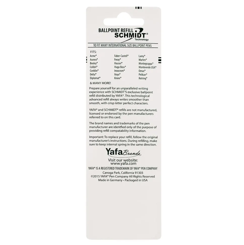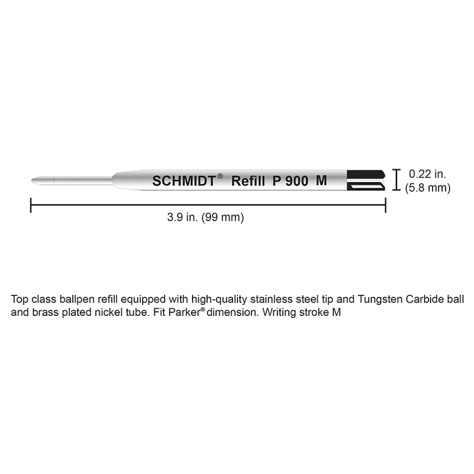 Schmidt P900 Fits many ballpoint pens, Acme®, Aldo Domani®, Aurora®, Bexly®, Colibri®, Delta ®, Diplomat ®, Faber Castell ®, Monteverde ®, Omas ®, Parker ®, Stipula®, Visconti®, Yafa ®