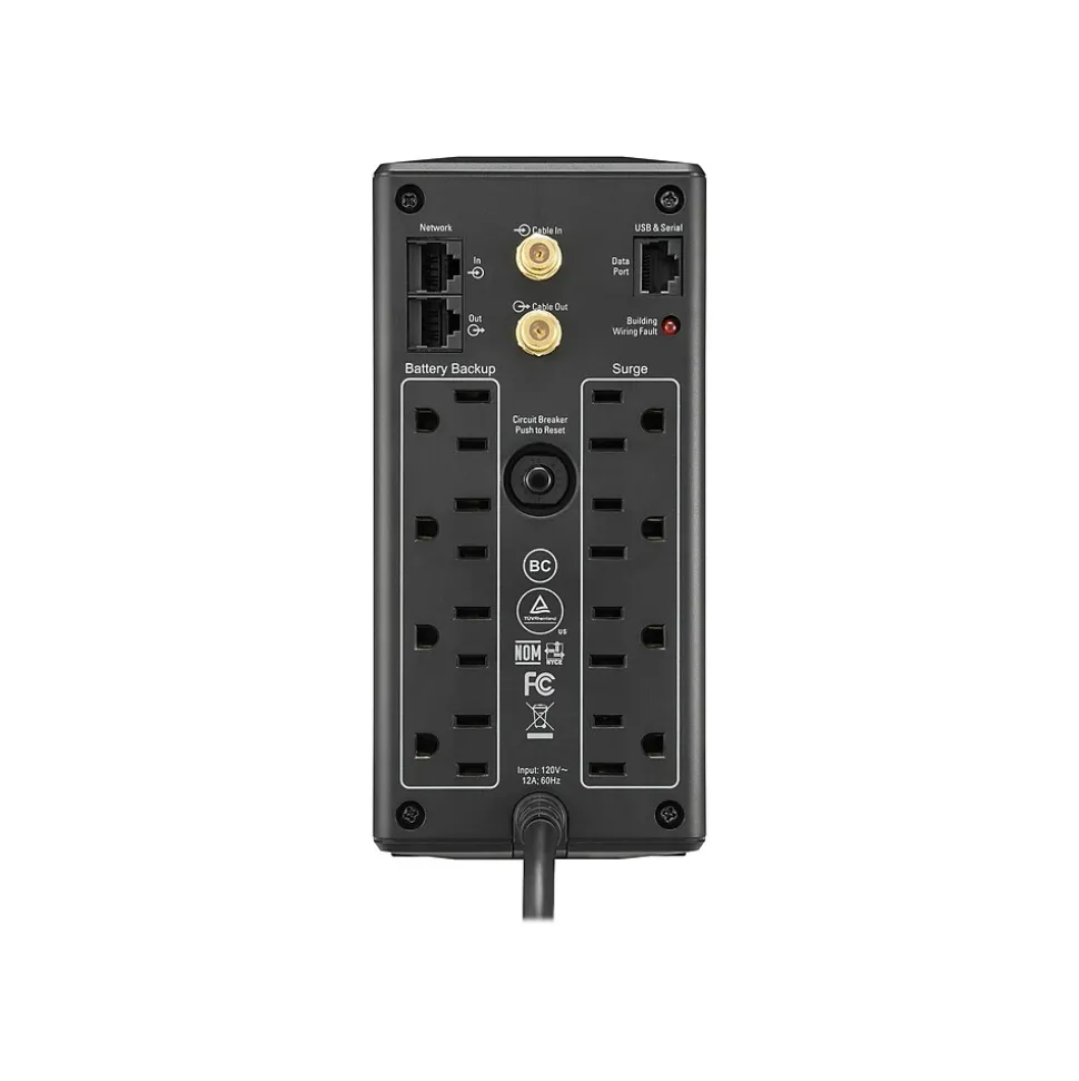 Provide backup power to modems, routers and other devices when electricity fails with this UPS compact tower. Dataline surge protection ports shield electronics from power spikes, and the energy management cuts power to peripherals if the master device shuts down. The LCD screen on this APC Back-UPS Pro tower displays the estimated run time for connected devices.