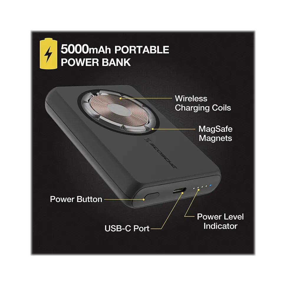- Portable 5000mAh MagSafe compatible magnetic power bank provides wireless and wired charging options