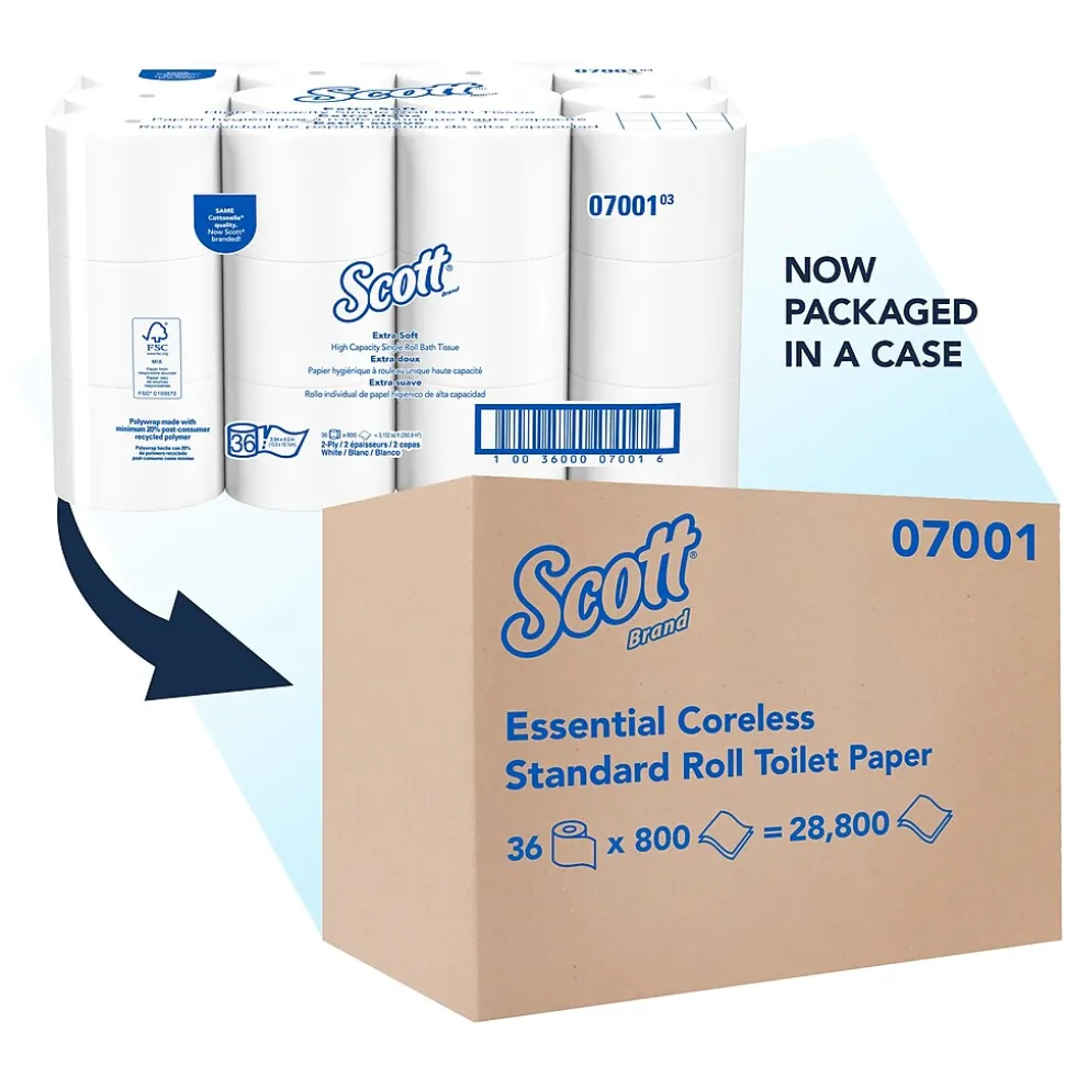 Increase comfort in the restroom with this 2-ply toilet paper. With rolls that are nearly 75 percent longer than standard bathroom tissue, this paper will last longer and require fewer changes. Its coreless design makes for less waste, and the case of 36 rolls is divided into 6-pack bundles for compact, convenient storage. This toilet paper fits most standard dispensers.