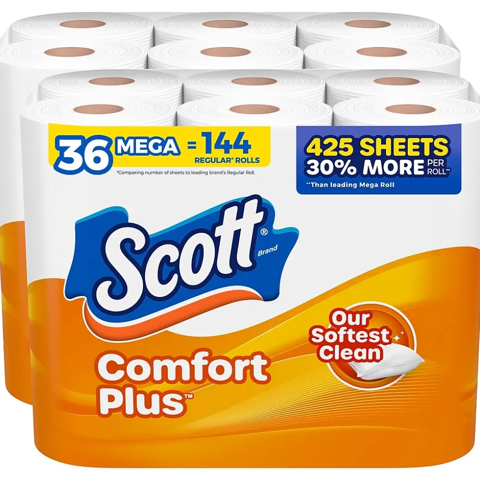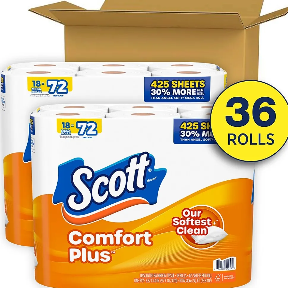 Scott Comfort Plus toilet paper is the only 1-layer bath tissue that offers everyday comfort plus a little extra. This toilet paper is 3x stronger than the leading bargain brand, and features sewer-safe and septic-safe bathroom tissue. Thick and plush sheets provide a trusted, comforting clean. Sustainably sourced from responsibly managed forests. Meets or exceeds EPA standard; FSC and EcoLogo certified for elemental chlorine-free (ECF) bleaching.
