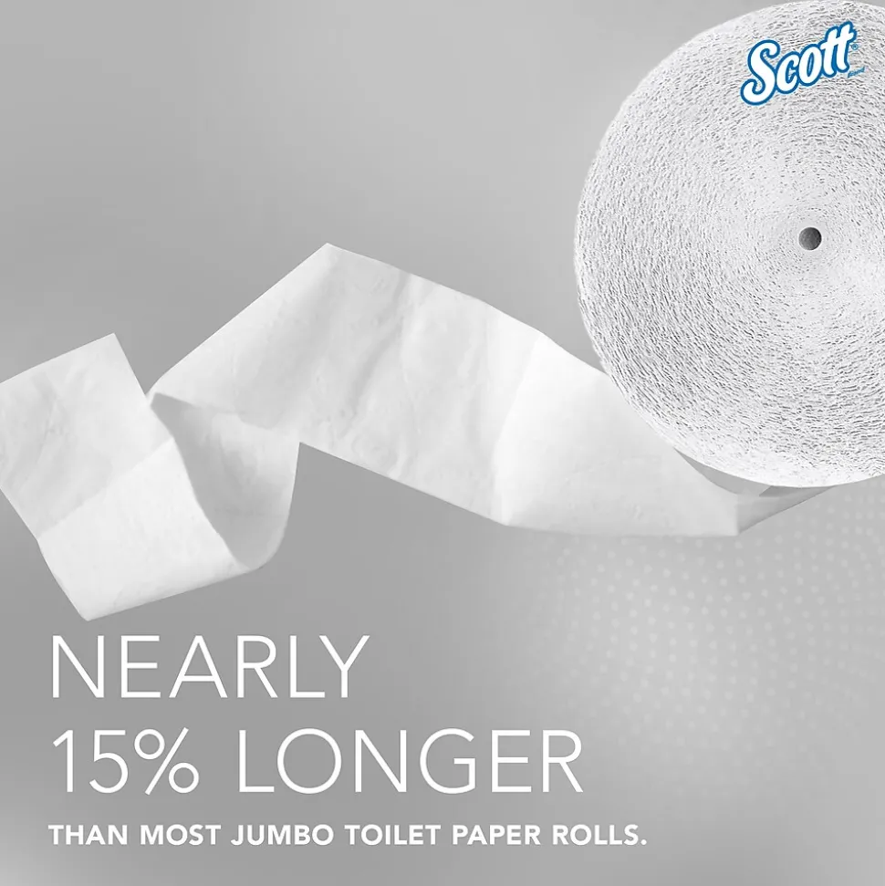 - 2,300’/Roll, 12 ScottĀ® Coreless High-Capacity Jumbo Roll Toilet Paper Rolls/Case; 27,600’/Case; 1-Ply; White