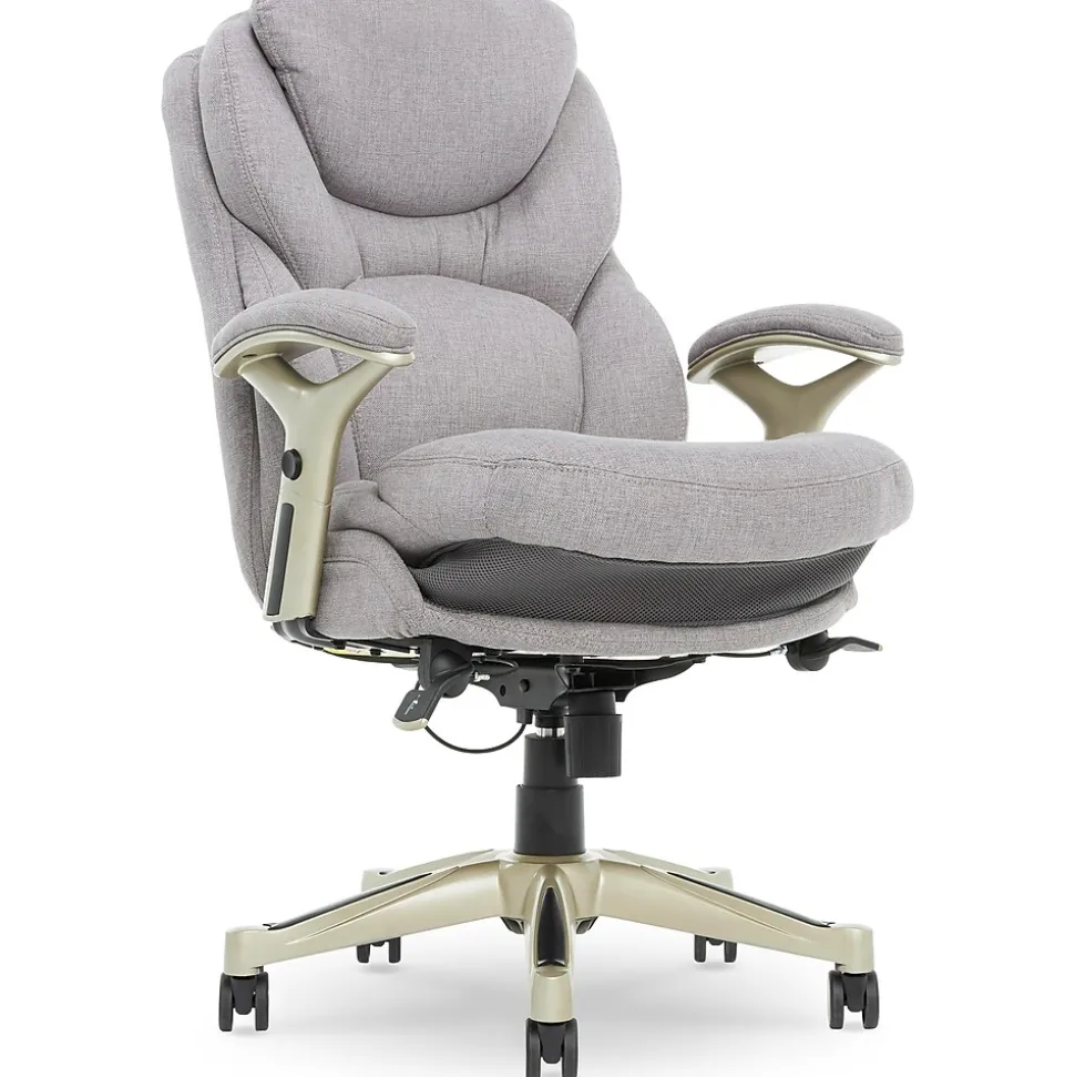 Imagine an office chair that helps promote strength and flexibility in your back. That’s the Serta Works ergonomic executive office chair with Back in Motion technology. This feature-rich, performance-focused chair helps its users become more productive and efficient by maximizing lower back support and comfort while seated. The Back in Motion active seat technology swivels the lumbar forward like the pelvis tilt exercise, promoting strength and flexibility in your core. The chair’s push-button adjustable armrests and pneumatic height adjustment can be customized to find the right fit for you. And the multi-layered cushions are comfortable yet supportive, so you’ll feel refreshed and rejuvenated, even after a long day.