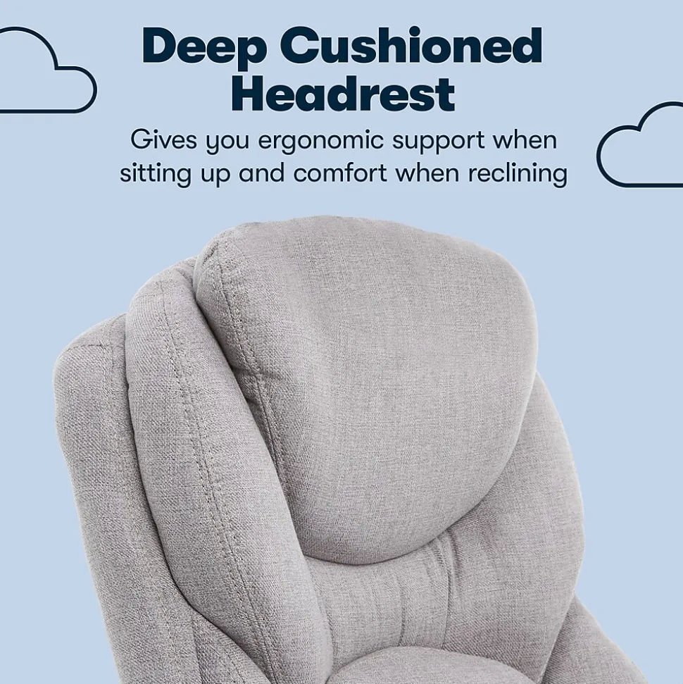 - Thick ergonomically layered body pillows, cushioned headrest, and padded arms are comfortable and supportive