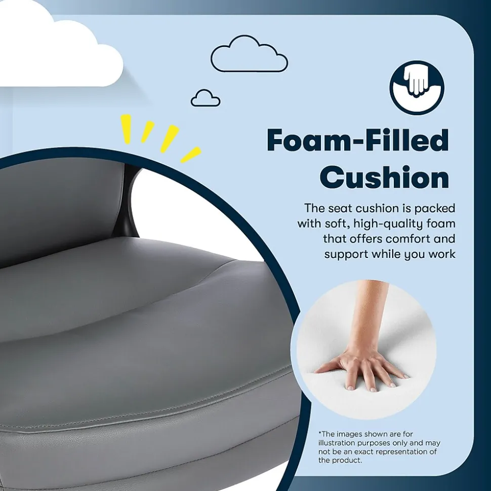 The better you sit, the better you’ll feel. Whether for work, play, or any other activity that has you sitting in our chairs, we believe comfort is everything. We know it’s a big responsibility and take it seriously, just as we do with our mattresses. With over 15 years of making chairs and innovating with designs, materials, and technology, Serta knows what it takes to give you a comfortable sit. The Serta Comfort series of office chairs offers a luxuriously cushioned seat, backrest, and armrests filled with thick, non-recycled Serta foam and upholstered in a soft breathable bonded leather to keep you cool and comfortable during extended use. This chair seamlessly blends its comfort with sleek design, accented by a single channel tuft. Choose from Black, Brown, Gray, or Cognac to find the perfect match for your workspace. This executive big & tall model is a high-back design which can be helpful for people who tend to experience discomfort due to long sitting periods. High-back chairs offer upper back, shoulder, and neck support and encourages proper spinal alignment by supporting the back in a neutral position which helps reduce muscle fatigue and promotes a better overall posture. The 360° swivel metal base on double-wheel casters glides smoothly across carpets or rugs, and can handle up to 350 lbs. Finding your ideal seated position is easy with the one-touch side lever for convenient height adjustment to match your work style and desk set-up. Whether you’re conquering emails or squeezing in work between kid duty and dog walks, the Serta Comfort Executive Big & Tall office chair will transform your home office into a command center of productivity.