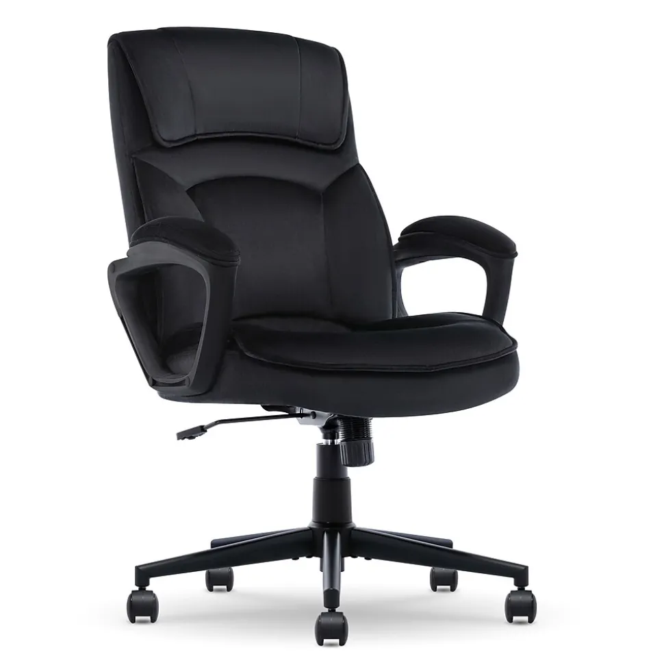 The better you sit, the better you’ll feel. Whether for work, play, or any other activity that has you sitting in our chairs, we believe comfort is everything. We know it’s a big responsibility and take it seriously, just as we do with our mattresses. With over 15 years of making chairs and innovating with designs, materials, and technology, Serta knows what it takes to give you a comfortable sit. Feel ready to take on the day every time you’re sitting at your desk with the Serta Comfort Classic. This mid-back office chair prioritizes the way you feel with layered body pillows, padded armrests, and a semi-plush seat cushion that’s double-layered with thick, non-recycled Serta foam. It’s covered in ultra-soft velvet fabric and available in 4 contemporary colors – Gray, Taupe, Pink, or Black. Mindful of the way the body shifts positions throughout the day, the Comfort Classic features ergonomic contours in the backrest to adapt to your posture. There’s also support in the lumbar region to promote natural spinal alignment and reduce strain on your lower back. The 360° swivel metal base on double-wheel casters glides smoothly across carpets or rugs, and can handle up to 275 lbs. Finding your ideal seated position is easy with the one-touch side lever for convenient height adjustment and tilt-lock to match your work style and desk set-up. Designed for comfort, but delivering stylish ergonomics, the Comfort Classic executive chair is your workday partner to check off the boxes on your to-do list. Add it to your cart and order today.