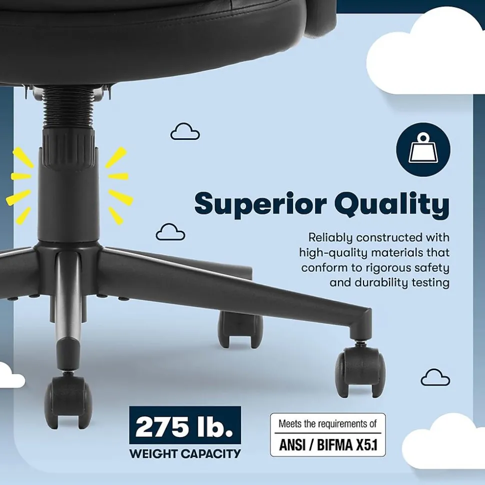 The better you sit, the better you’ll feel. Whether for work, play, or any other activity that has you sitting in our chairs, we believe comfort is everything. We know it’s a big responsibility and take it seriously, just as we do with our mattresses. With over 15 years of making chairs and innovating with designs, materials, and technology, Serta knows what it takes to give you a comfortable sit. Make your desk a place you love to be with the Comfort Ergo chair. Its modern aesthetic and ergonomic features ensure you can work comfortably and efficiently throughout your workday. Because the body shifts and moves into different positions, the mid-back design allows for natural mobility in the upper body and arms for freedom of movement. Gentle contours in the backrest conform to your natural spinal curves and provide lumbar support to encourage good posture and reduce pressure on your lower back. Whether you’re seated for short durations or long, extended hours, the well-cushioned backrest, armrests, and double-layer waterfall edge seat keep you relaxed and supported with a semi-plush comfort feel. Covered in durable bonded leather or feathery soft velvet, choose from 4 versatile colors in Cognac, Black, Gray, or Pink to match your decor. A 360º swivel metal base sits atop double-wheel casters that smoothly glide over rugs and carpets, making it easy to scoot around your workstation. Plus, finding your ideal seated position is a breeze with the convenient seat-side lever to adjust the height and lock the tilt in the upright position. Feel the difference of the Serta Comfort Ergo chair every time you take a seat. It’ll help you stay focused and productive so that you can check the boxes on your daily tasks. Add it to your cart and order today.