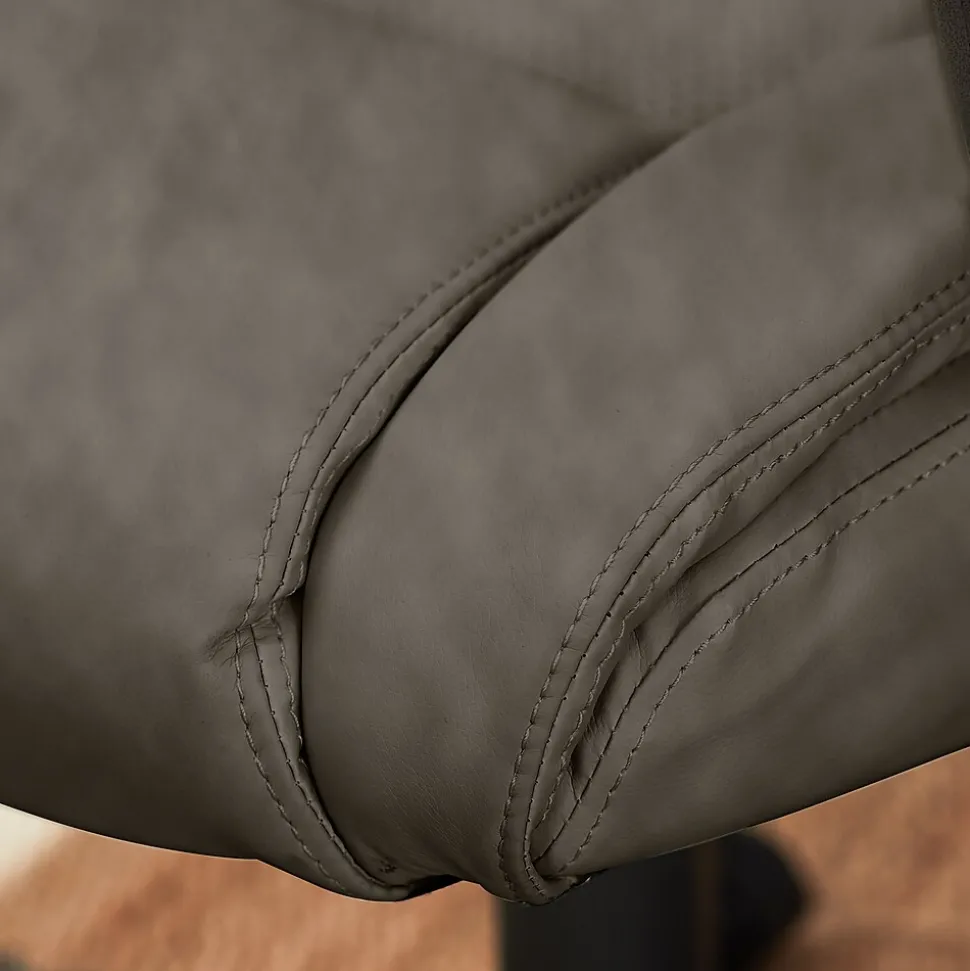 - Gray bonded leather upholstery is easy to maintain