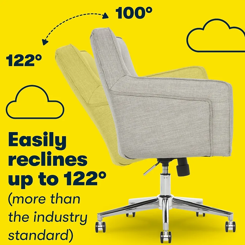The all-American office chair just got an upgrade! Meet the Serta Style Ashland Home Office Chair. From the chrome-finish base to the memory foam cushions, this beauty is destined to become a classic in your office or home office. Customize your workspace with durable rolling casters that smoothly glide from task to task. With strong, elegant lines and soft upholstered fabric, the Ashland Home Office Chair from Serta can get you through the workweek with style and comfort!