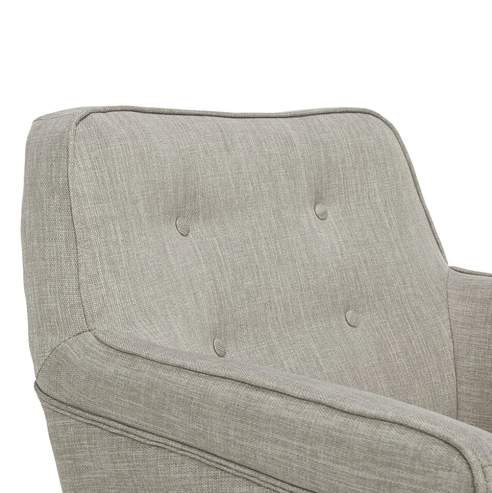 - Upholstered in soft charcoal light gray fabric