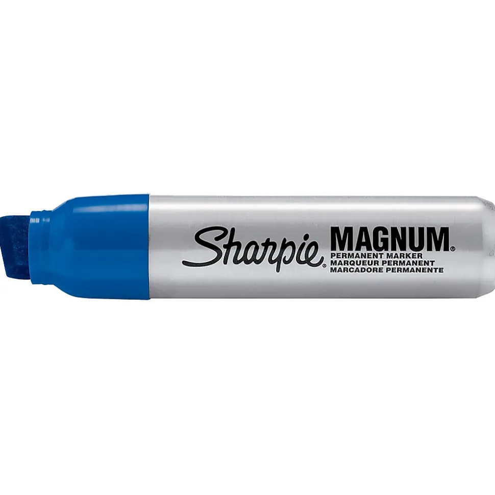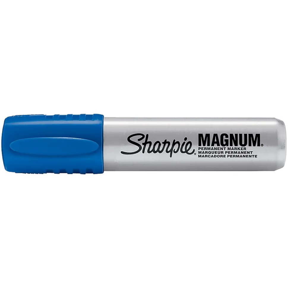 Mark equipment, materials and other items on a worksite with this chisel point marker. This marker works on wet, greasy, oily, tough, uneven and other difficult surfaces and features bold and bright ink. The ink of this Sharpie Magnum point marker is fade and water-resistant and dries quickly.