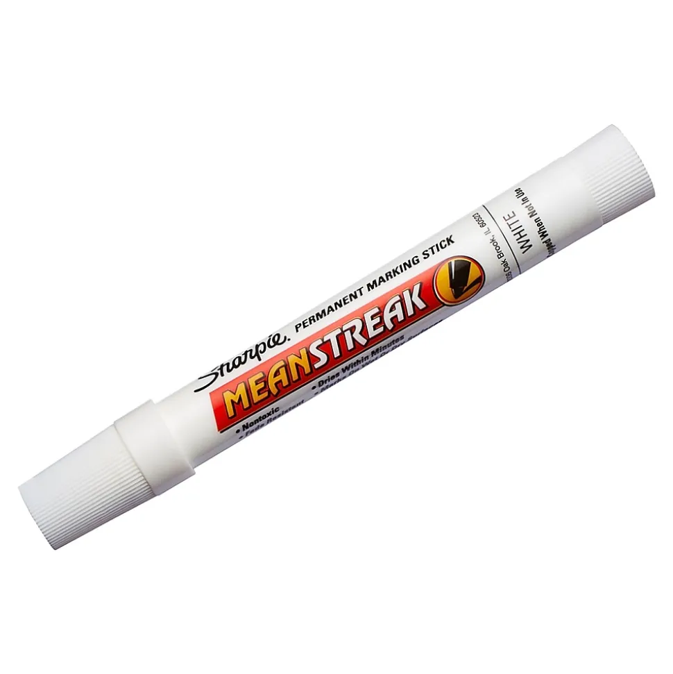 Write on dark surfaces, porous materials, fabrics, metal, and other surfaces easily with this permanent marking stick. Featuring an extra-bold bullet tip, this marking stick delivers strong and highly visible marks that are waterproof and fadeproof.Delivers an opaque, smear-proof mark that is easy to see on dark surfaces.