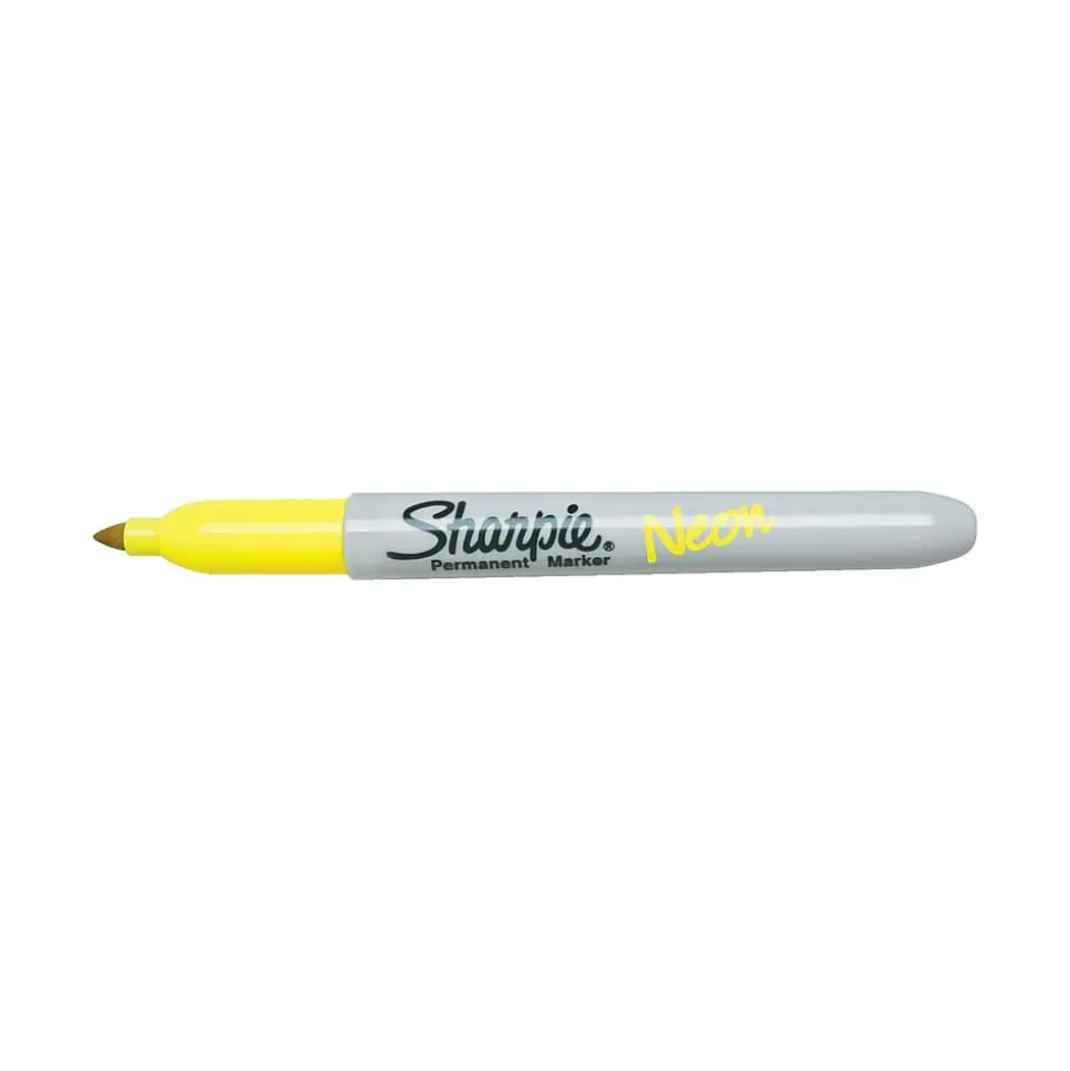The Sharpie Neon Fine Point Permanent Marker comes in yellow ink and allows for superior control when creating detailed images. These permanent markers have ink that is waterproof, fade-resistant and non-toxic. The ink from these markers goes on colorfully during the day and has a fluorescent glow in a black light environment.