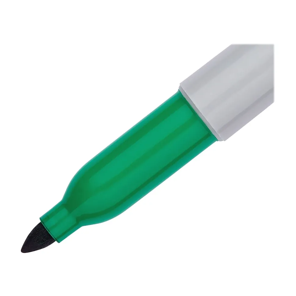 Add color to your next project with this permanent marker, which features a vibrant green ink. This versatile marker writes on an array of surfaces, while the fine point provides total control and precision over projects. The ink on Sharpie fine-point permanent markers is waterproof, smearproof, fade-resistant and quick-drying.