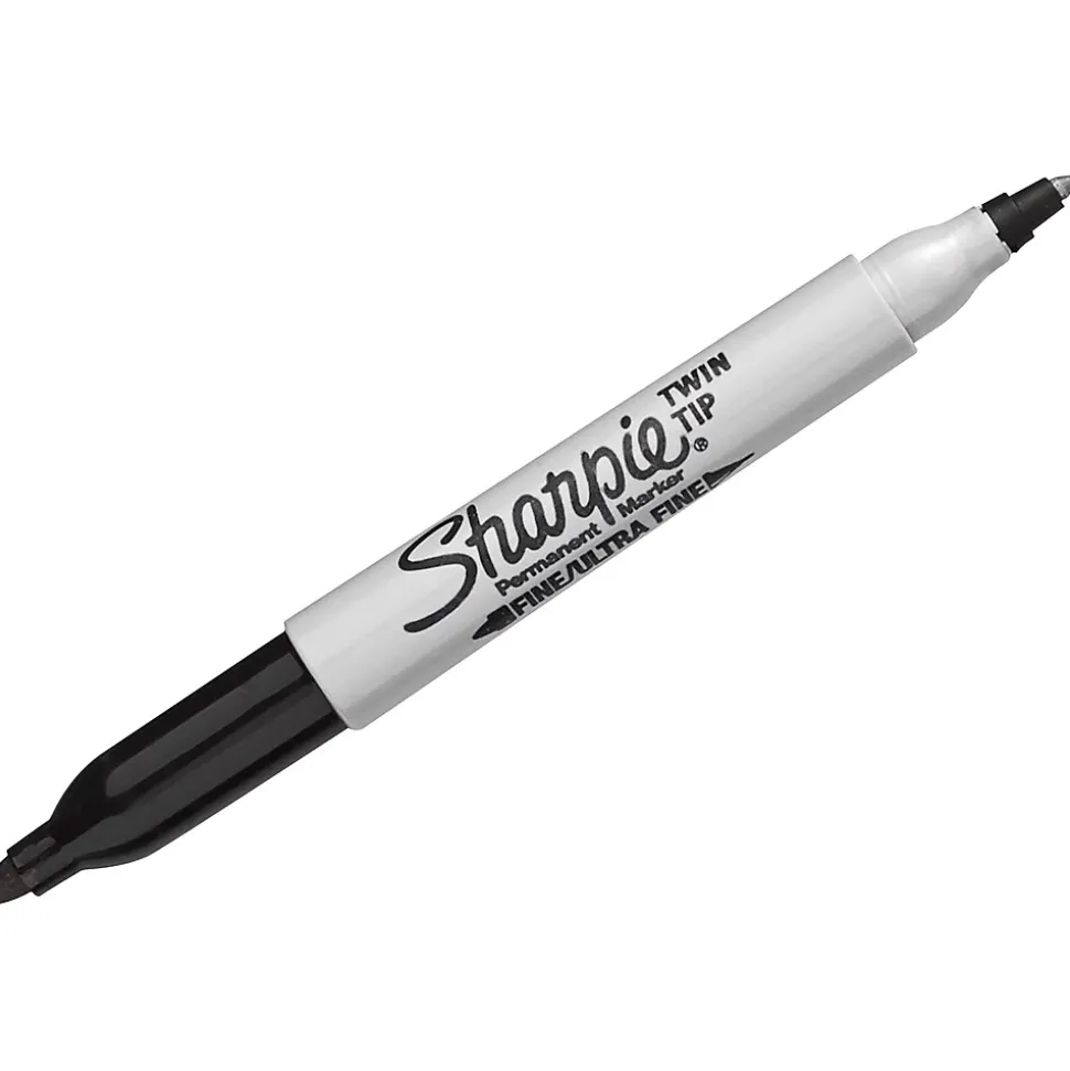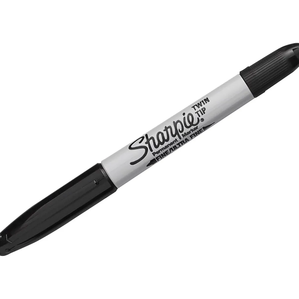 Enhance projects with these permanent markers. The twin-tip design lets you draw thin, precise details and bold, striking lines, providing enhanced versatility, while the black ink produces striking results that stand out easily against white and colored paper. These Sharpie twin-tip black permanent markers have protective caps to keep ink fresh and feature a quick-drying formula, preventing smears and streaks on your work.