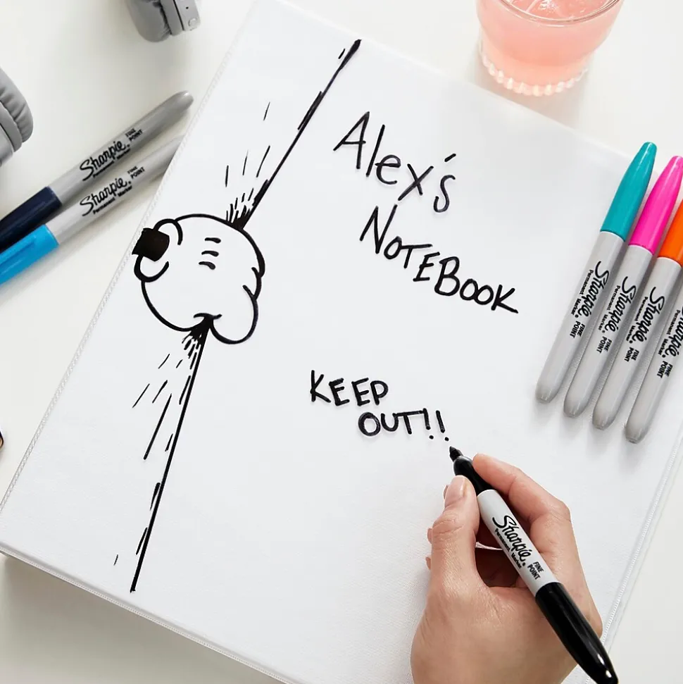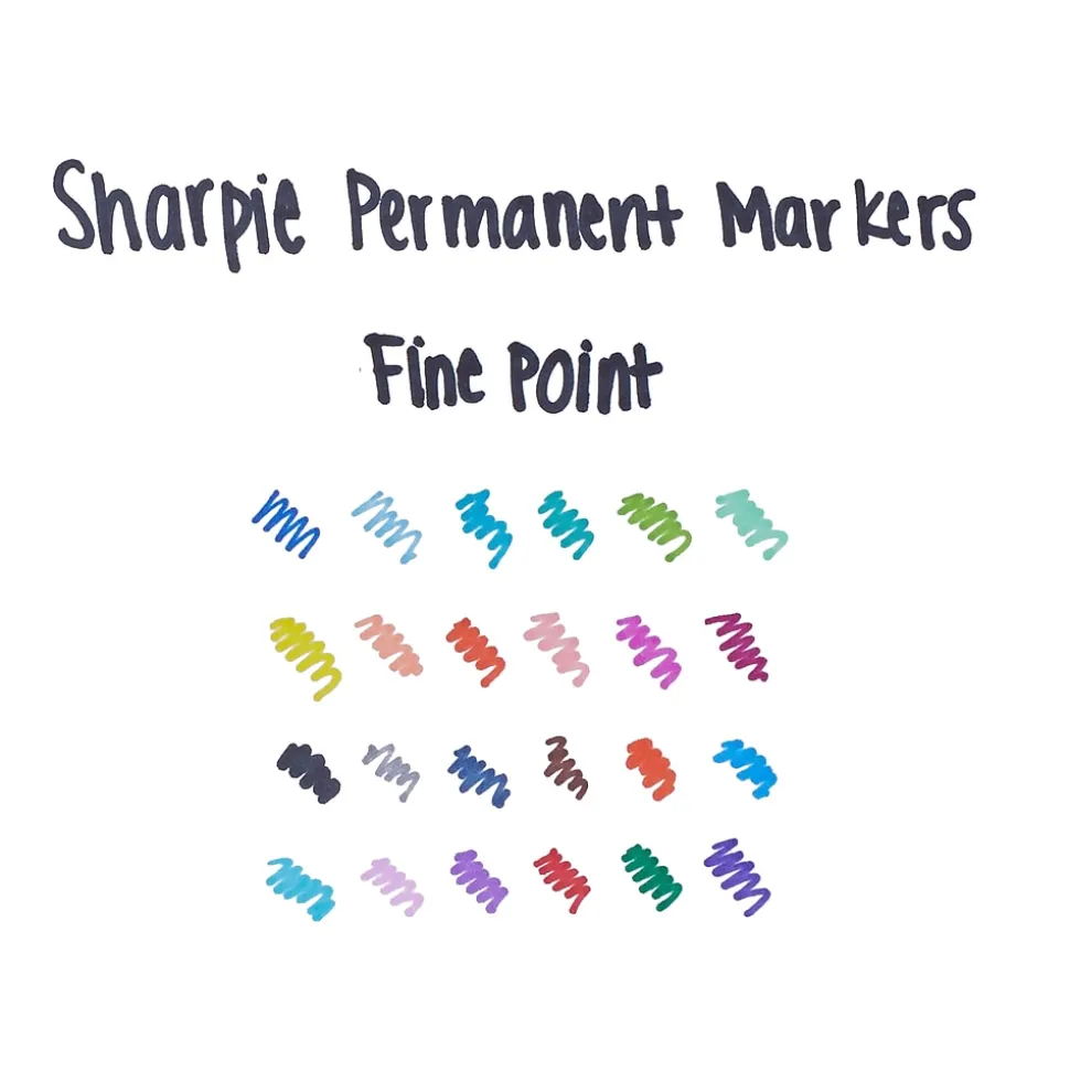 Create stunningly vibrant, permanent lines with these Sharpie fine-point purple permanent markers. The durable fine-point tip lets you make sharp lines on most hard-to-mark surfaces, while the unique safety seal valve helps prevent dry-out. The quick-drying ink is waterproof and fade-resistant and reduces smearing. These Sharpie purple permanent markers have intensely brilliant color and are ideal for use at home, school or the office.