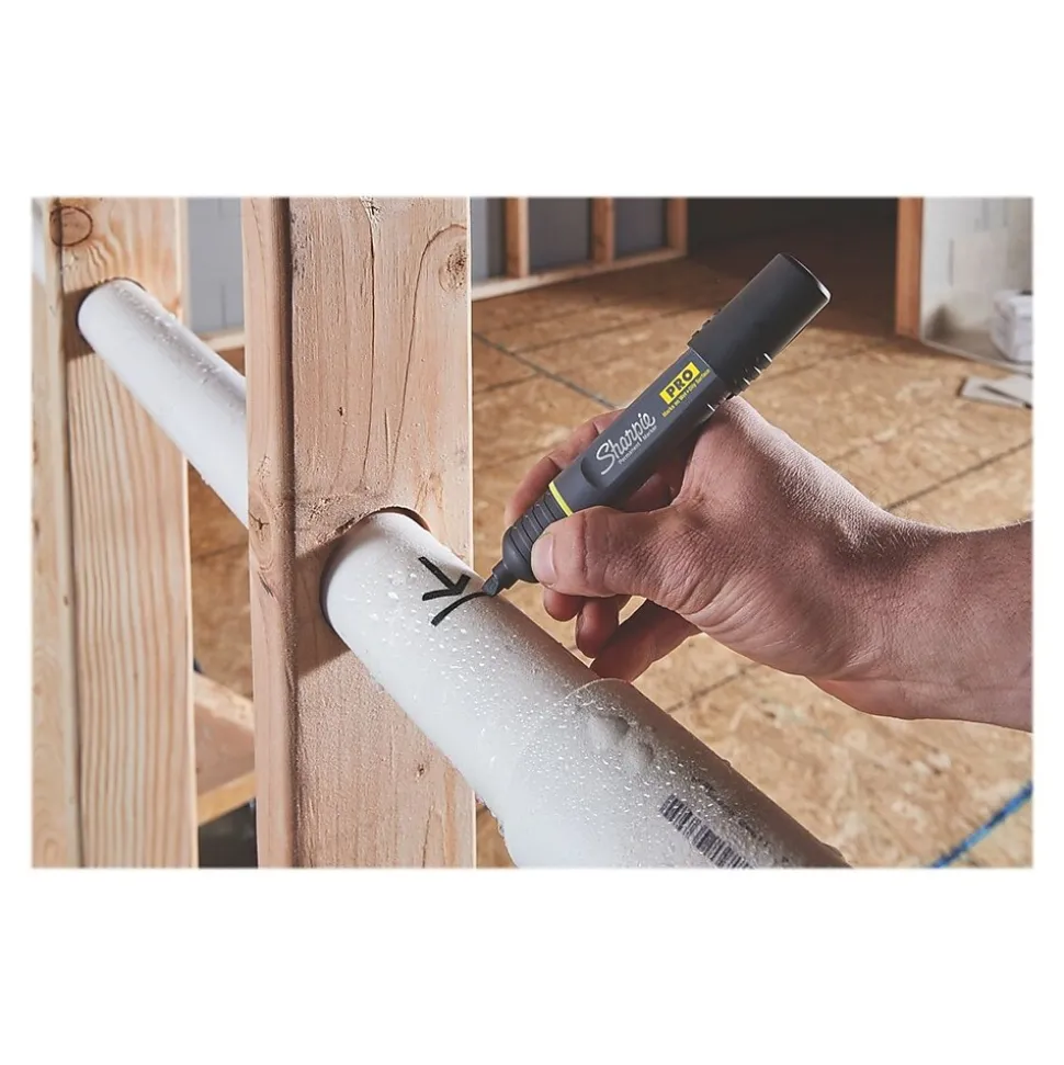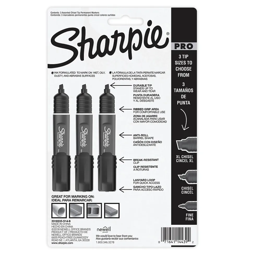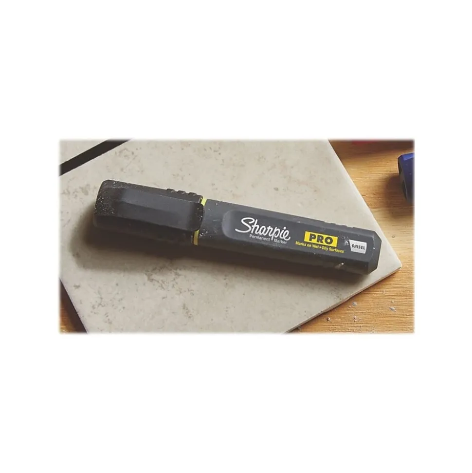 With permanent ink designed to mark on wet and oily surfaces, Sharpie PRO Permanent Markers are built jobsite-tough. The newly redesigned permanent markers better fit the needs of tradesmen with features like a medium-size anti-roll barrel shape, cap clip, lanyard loop, and more. The pack of 3 professional markers in black, blue, and red with a chisel tip will get the job done.